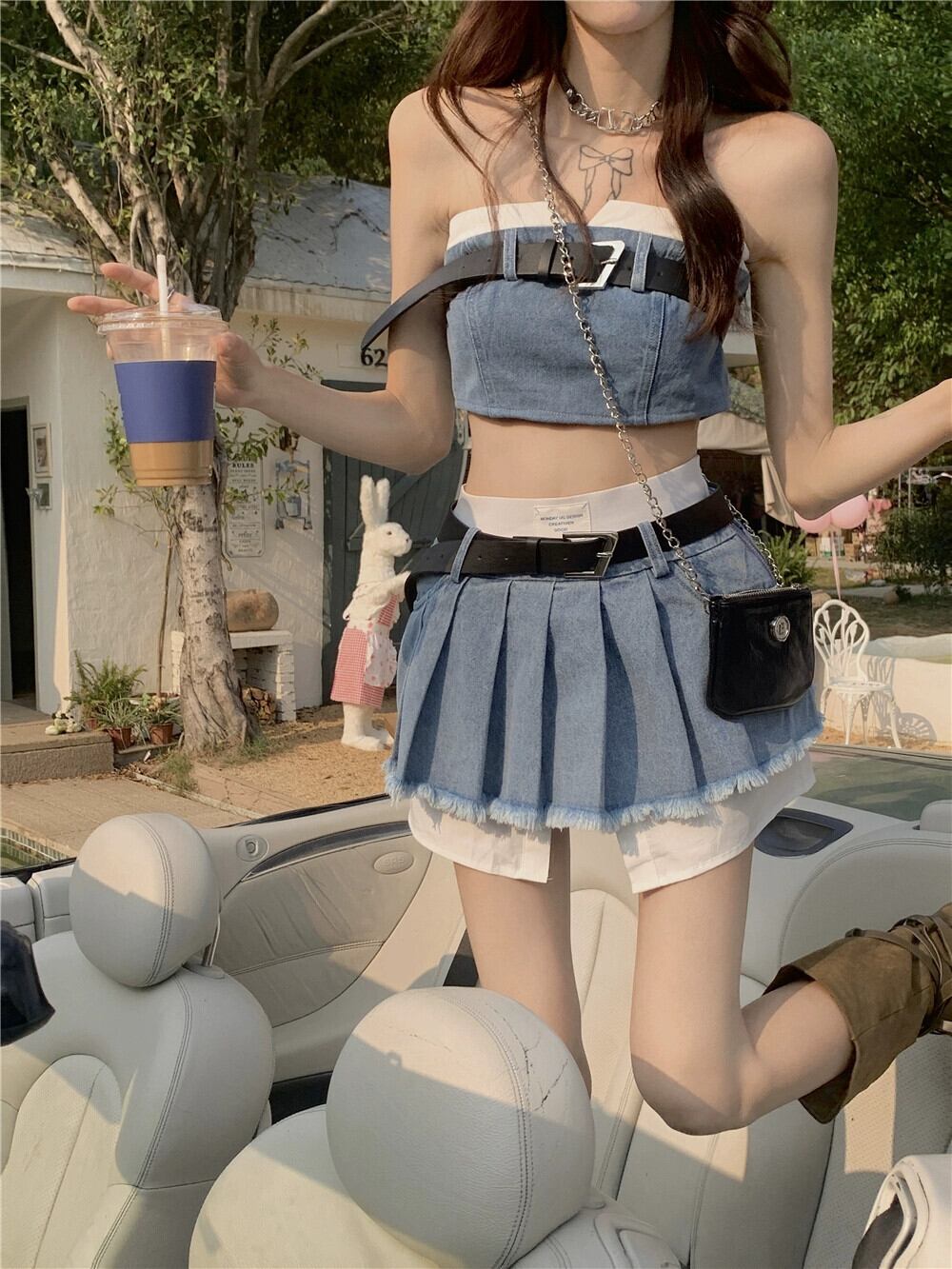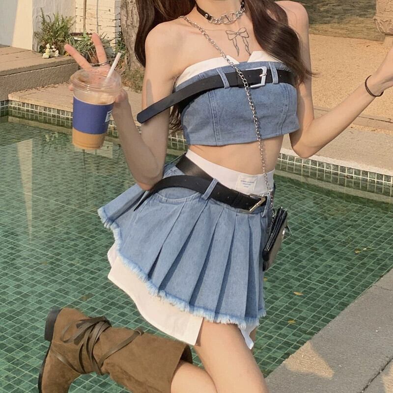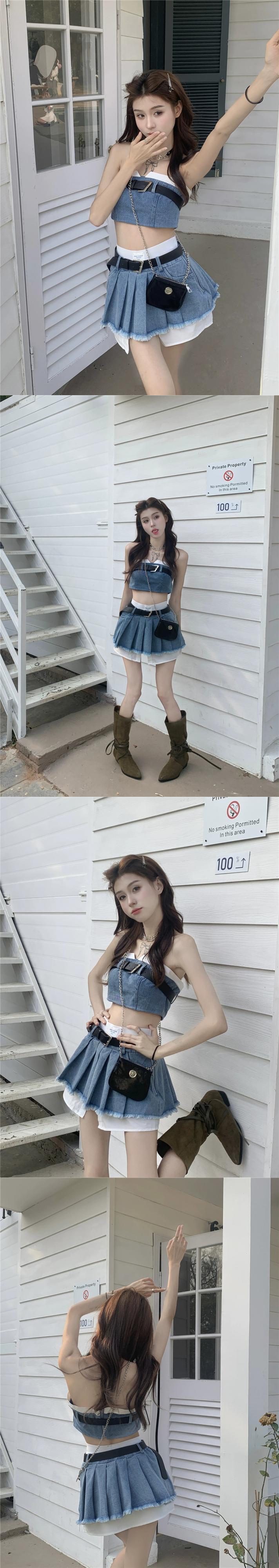 色:デニムベスト,デニムスカート