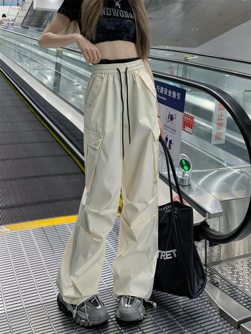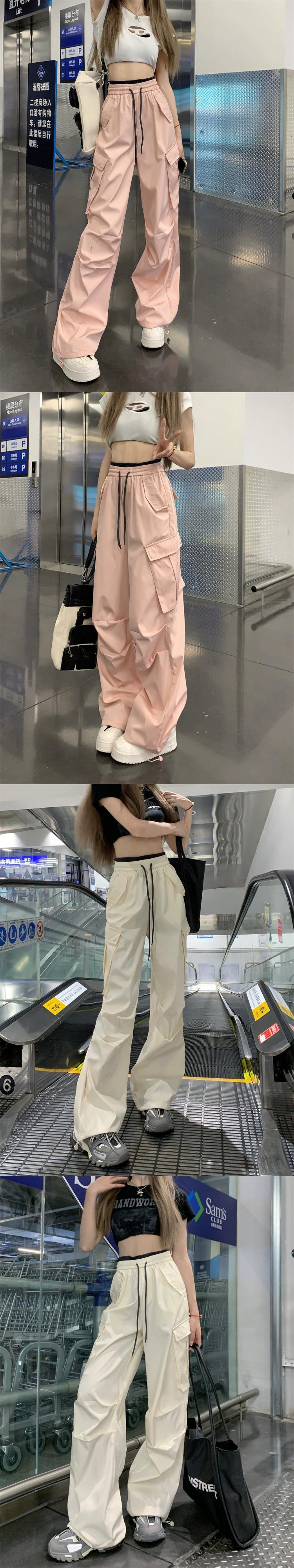 ピンクツーリングワイドレッグパンツの女性の夏の 2023 新しいアメリカンスタイルのレトロなハイウエストストレートカジュアルモップパンツ ハイウェスト サマー 夏物 8571669783274352