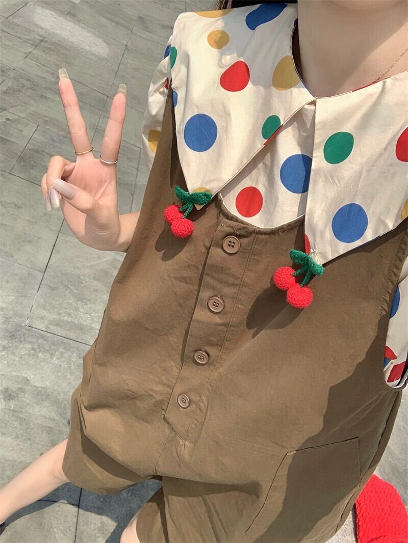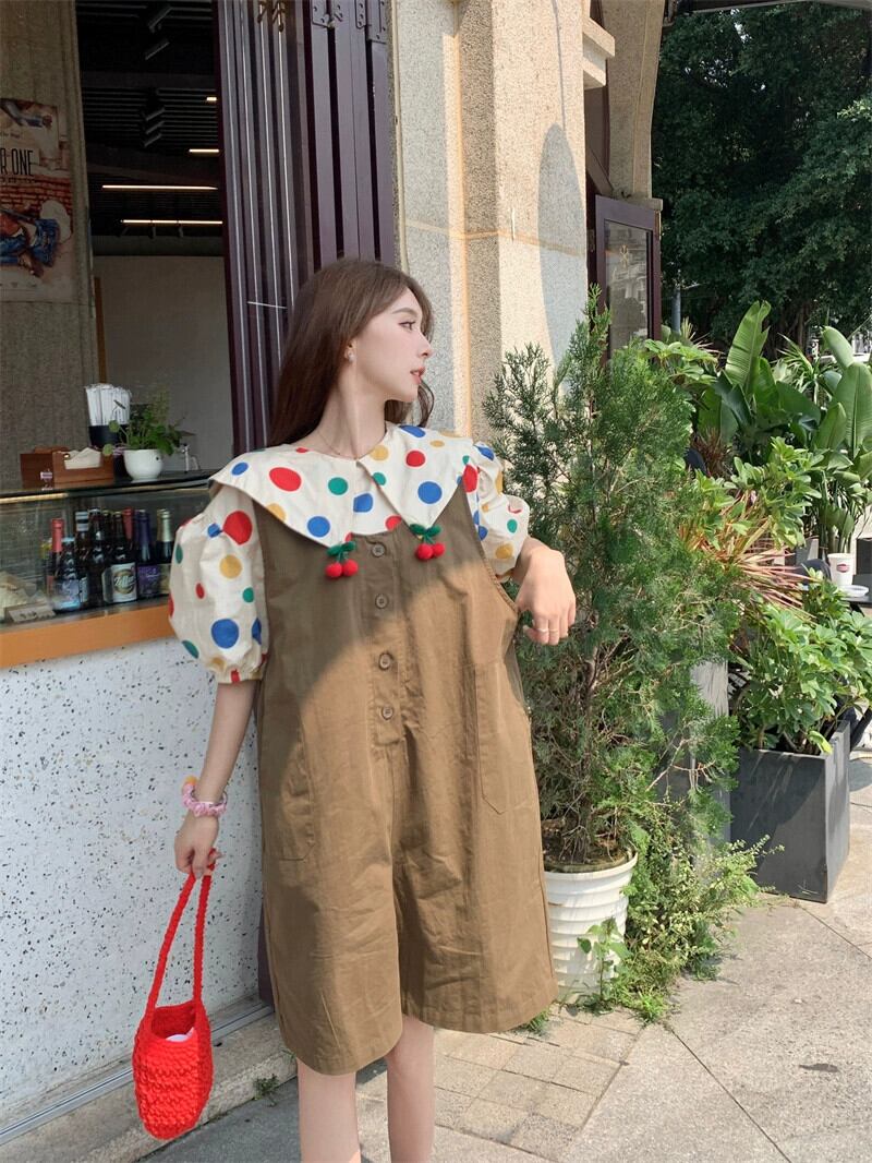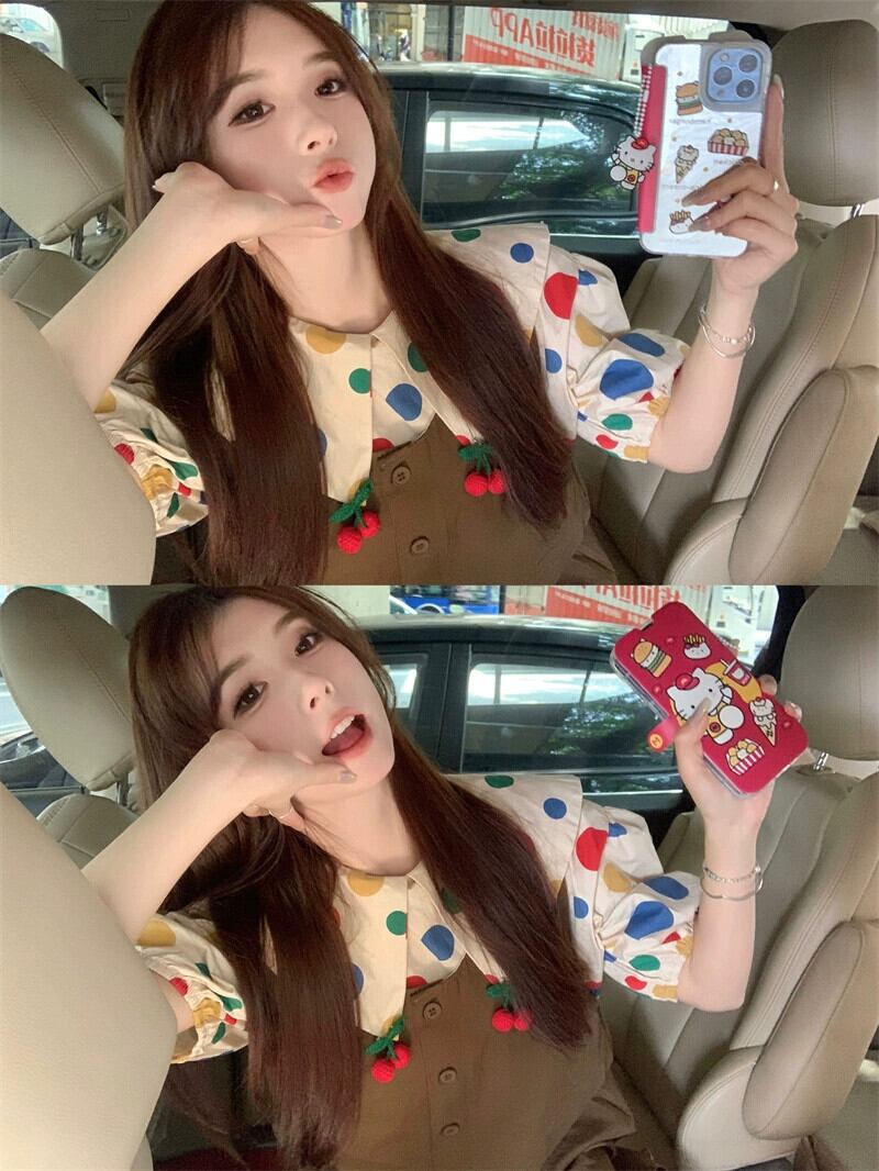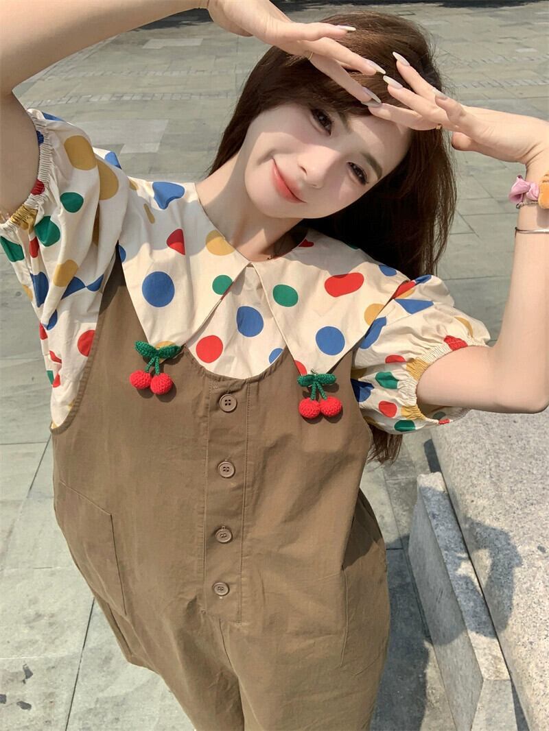 ポルカドールカラーシャツレディース2023年夏新デザインセンスニッチフレンチ甘くシックなカレッジ風トップ 大人ガーリー スウィート キュート カジュアル サマー 夏物 8571694169982795
