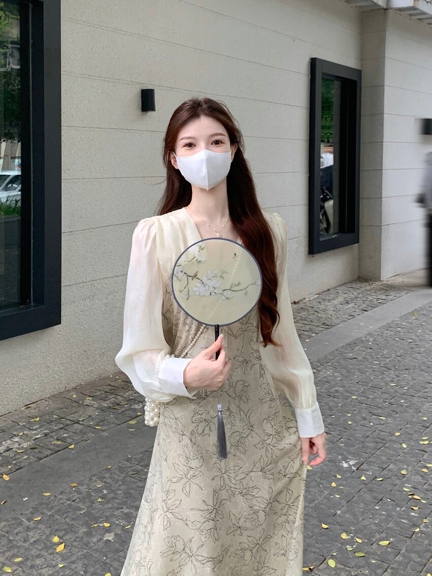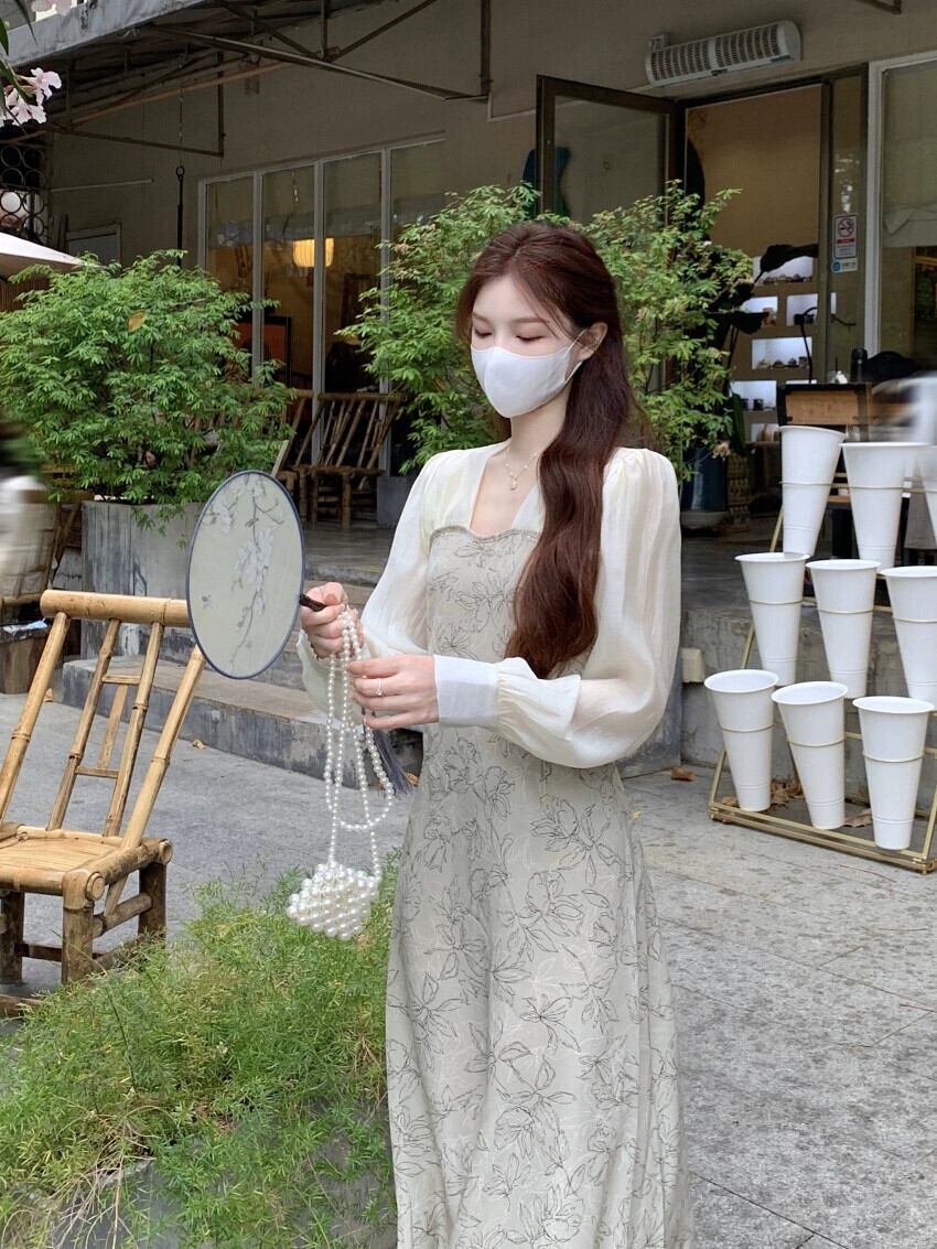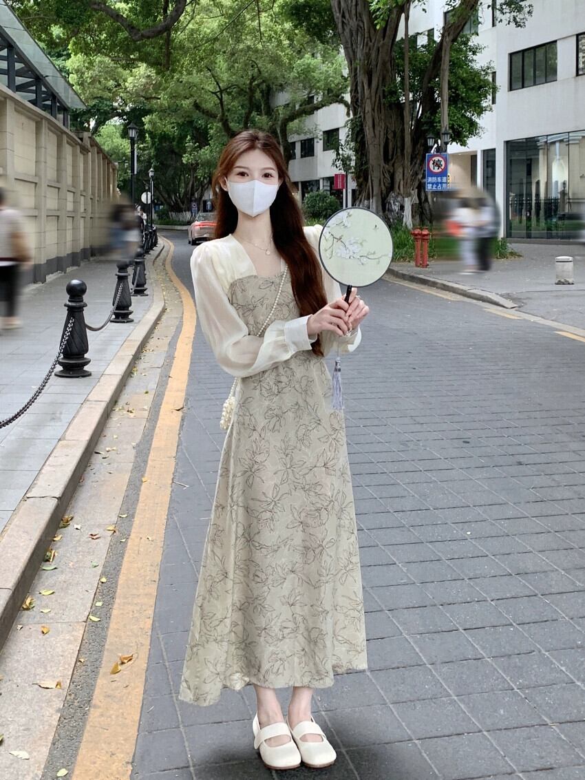美しい長袖ドレスレディース 2023 春の新作フレンチスタイルのハイエンドデザインセンスニッチパフスリーブロングスカート スプリング 春物 8571673746100679