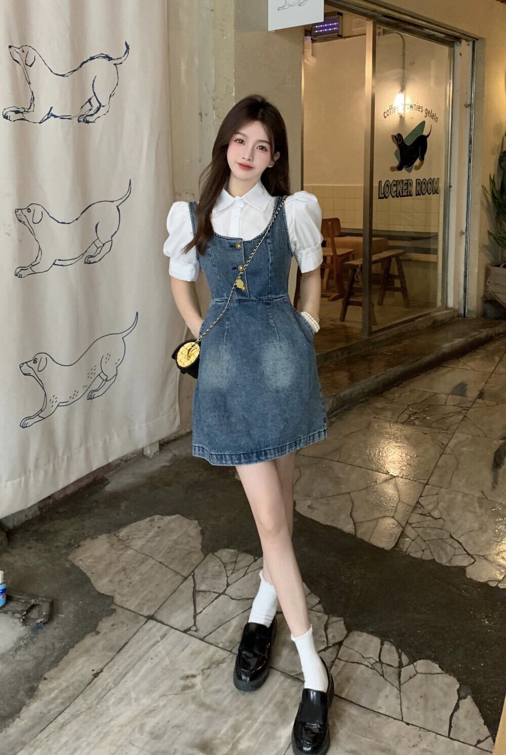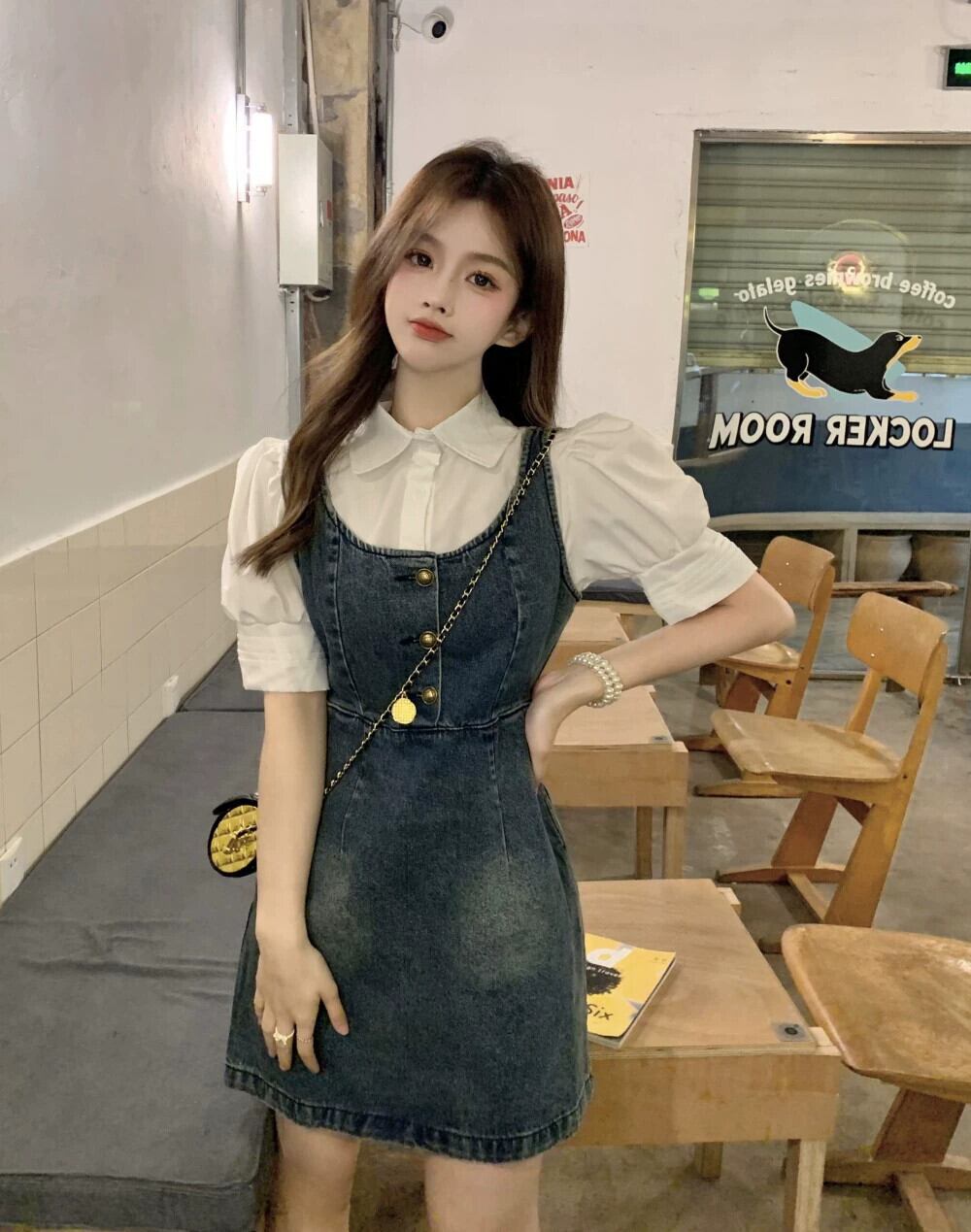 色:デニムストラップドレス,8538シャツ