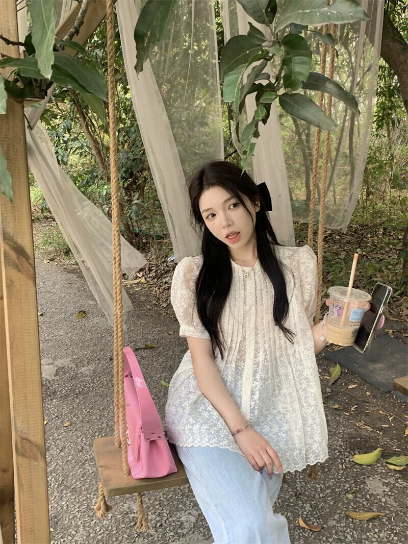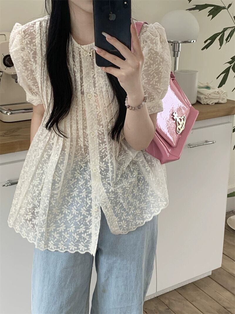 レースドールシャツトップ女性のハイエンドデザインセンスニッチ夏2023新しいスタイルシックな美しい小さなシャツ サマー 夏物 8571671297599812