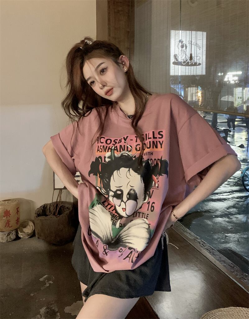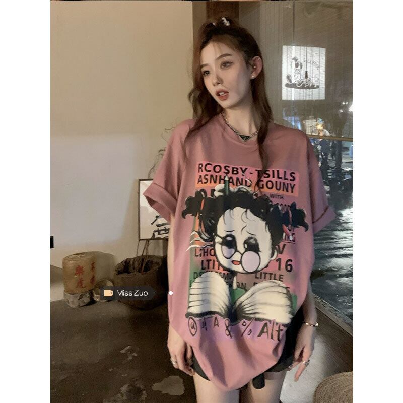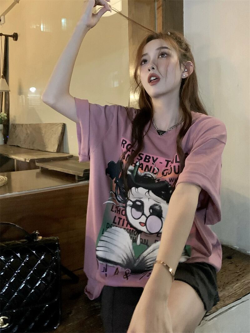 ピンク半袖Tシャツレディース2023年夏新デザインセンスニッチアインスタイル年齢軽減ユニークなゆったりとした薄手のトップス サマー 夏物 8571699732326860