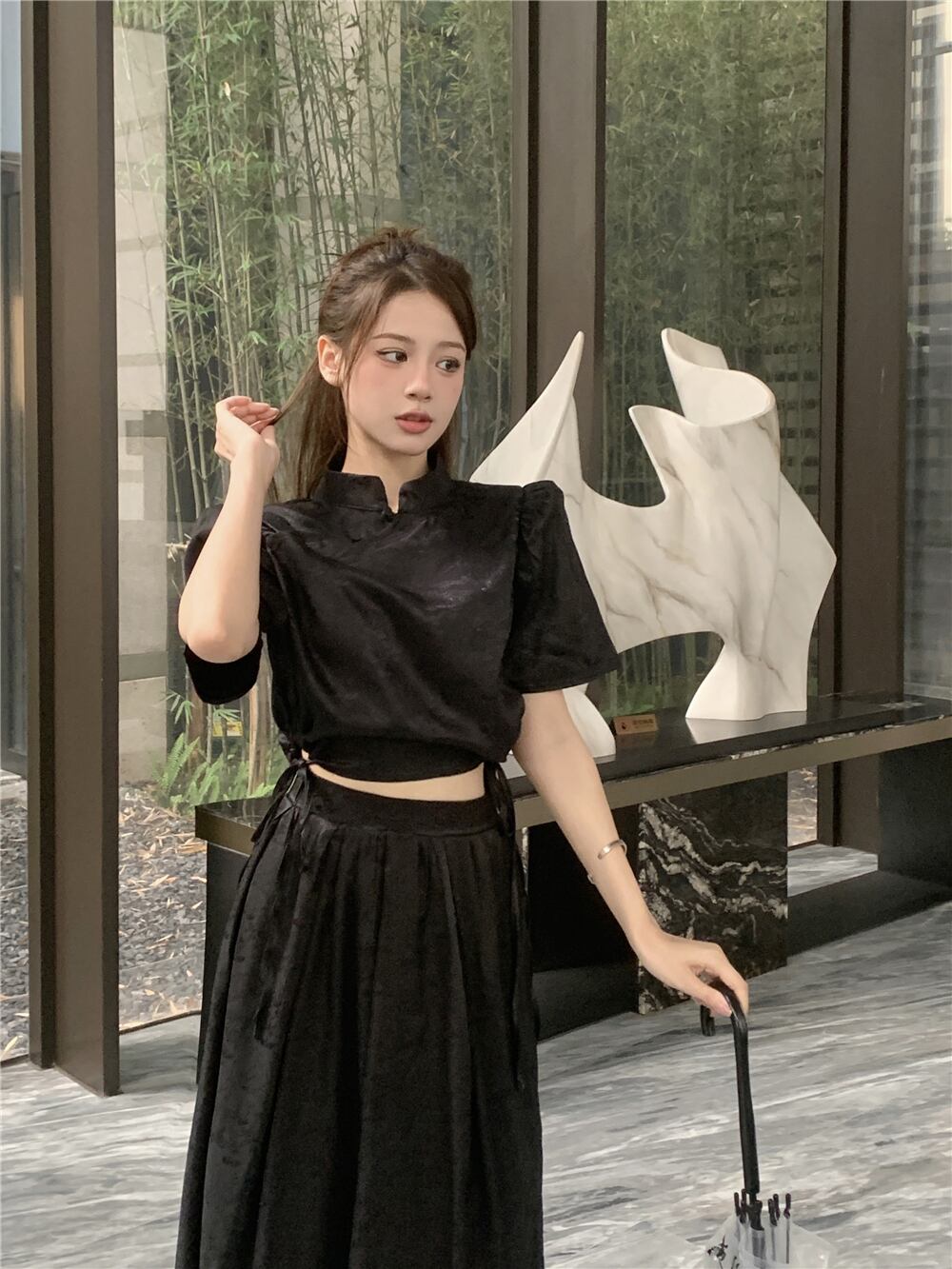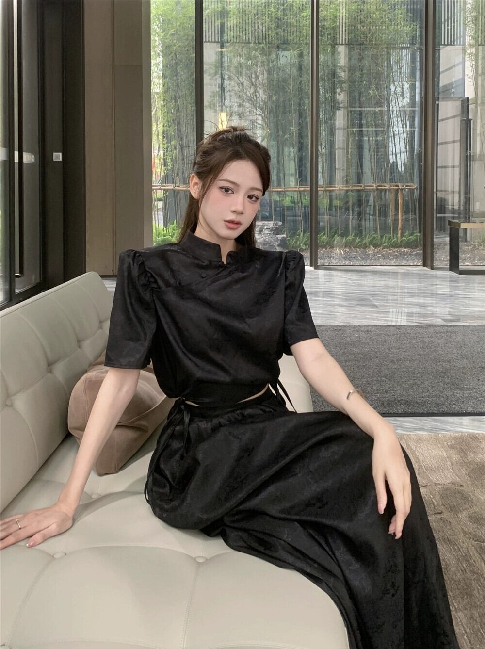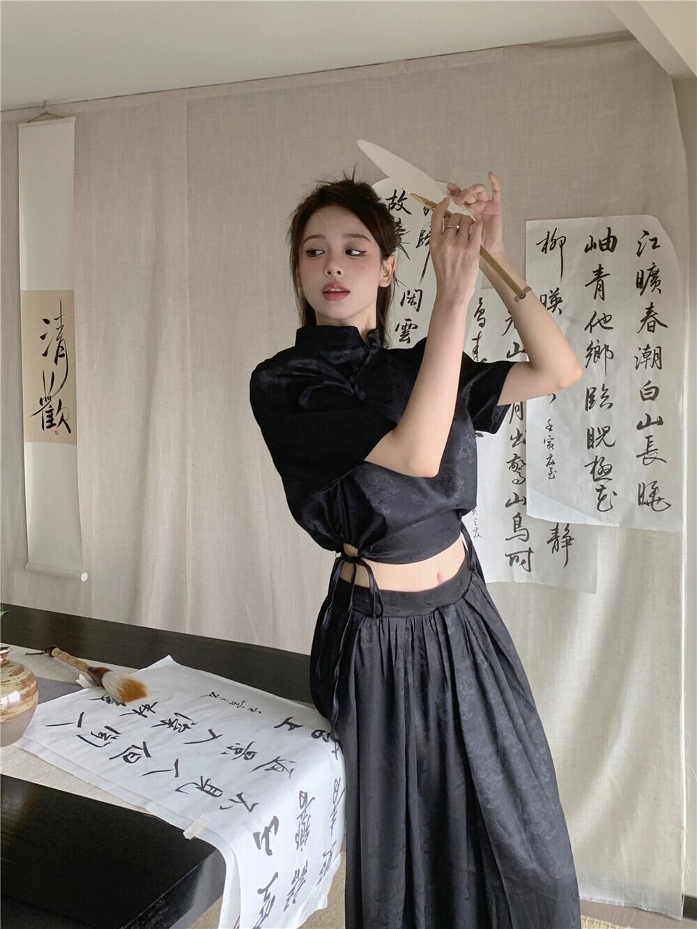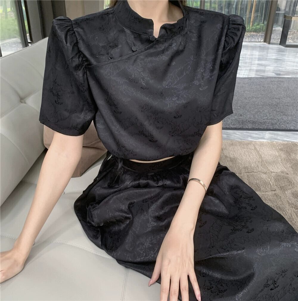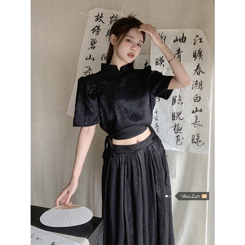 改良されたチャイナ ドレス スタイル ショート トップ女性の夏の新しい中国風国民風レトロ気質ハイエンド黒半袖シャツ ブラック サマー 夏物 8571682339008045