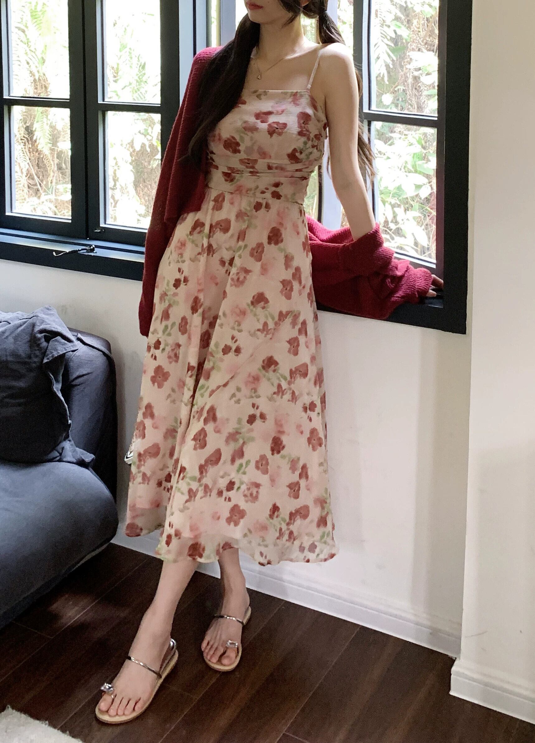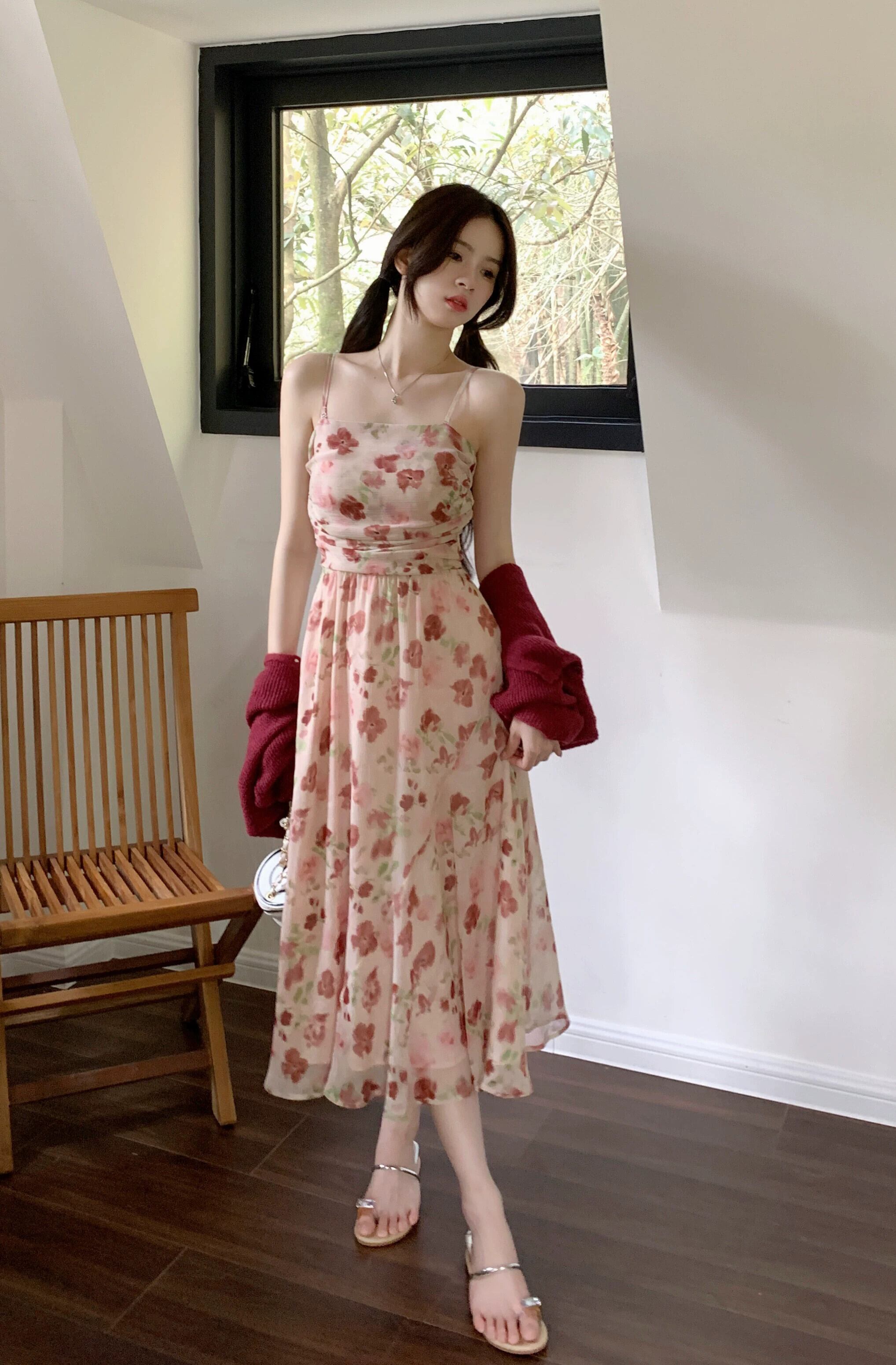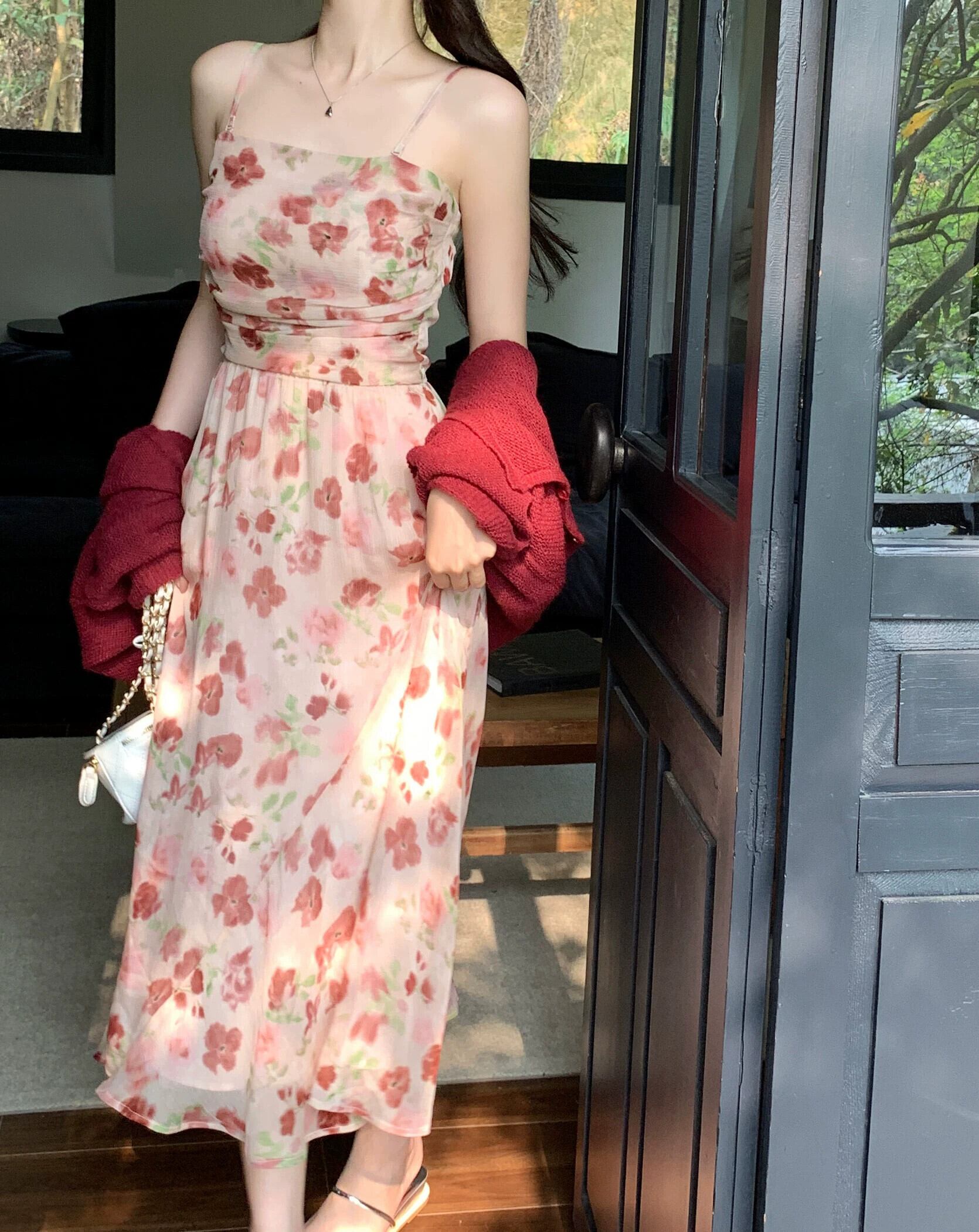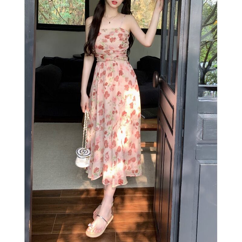 花柄スリングドレス女性の夏の 2023 新しいフレンチニッチレトロ優しいスタイルの美しいロングスカート サマー 夏物 8571627839904991