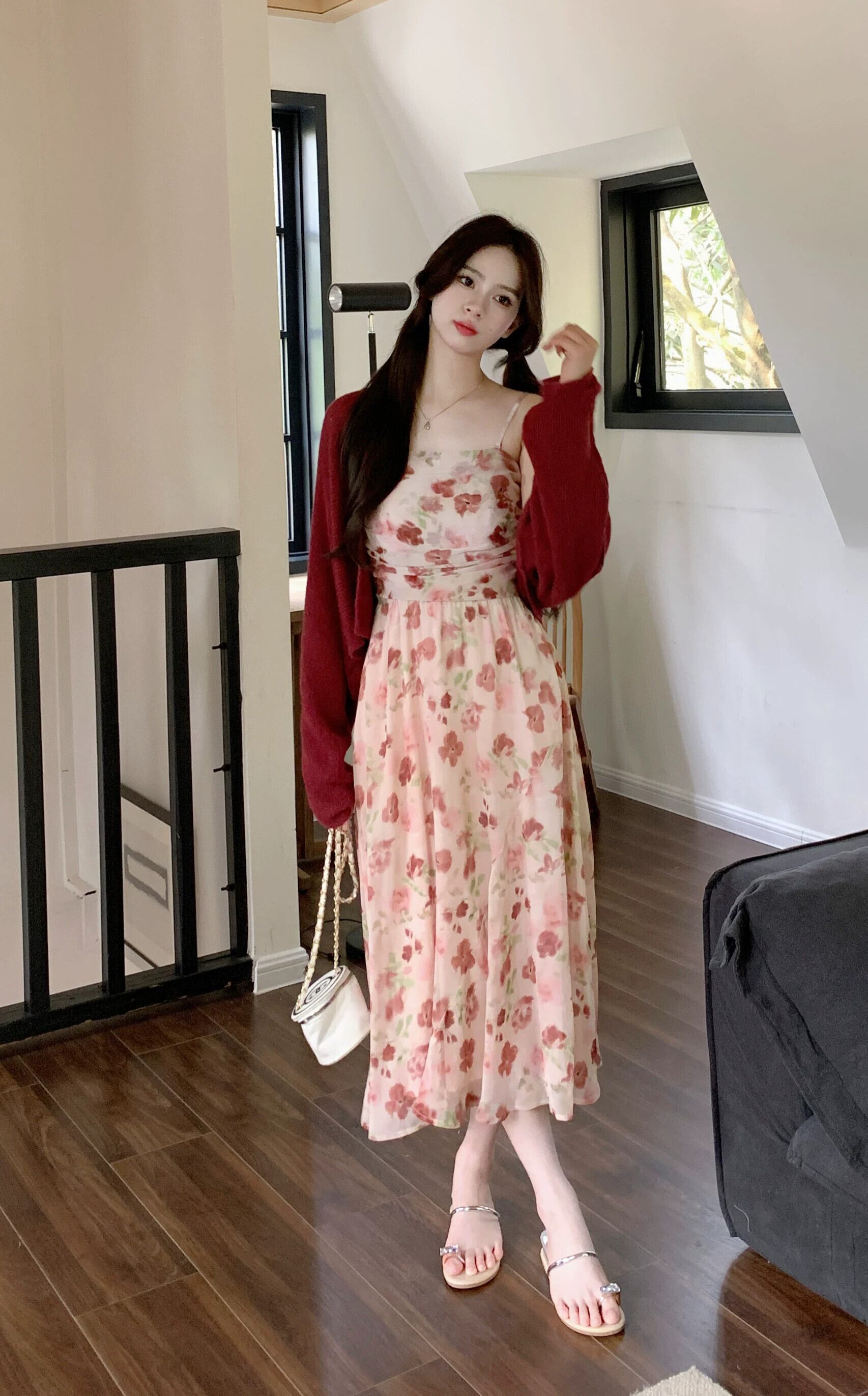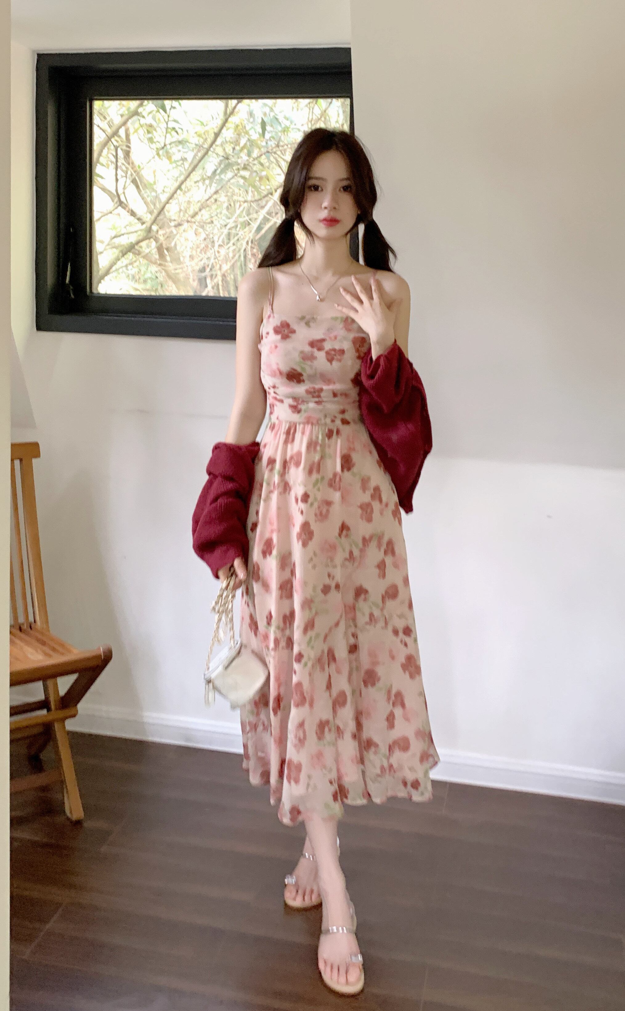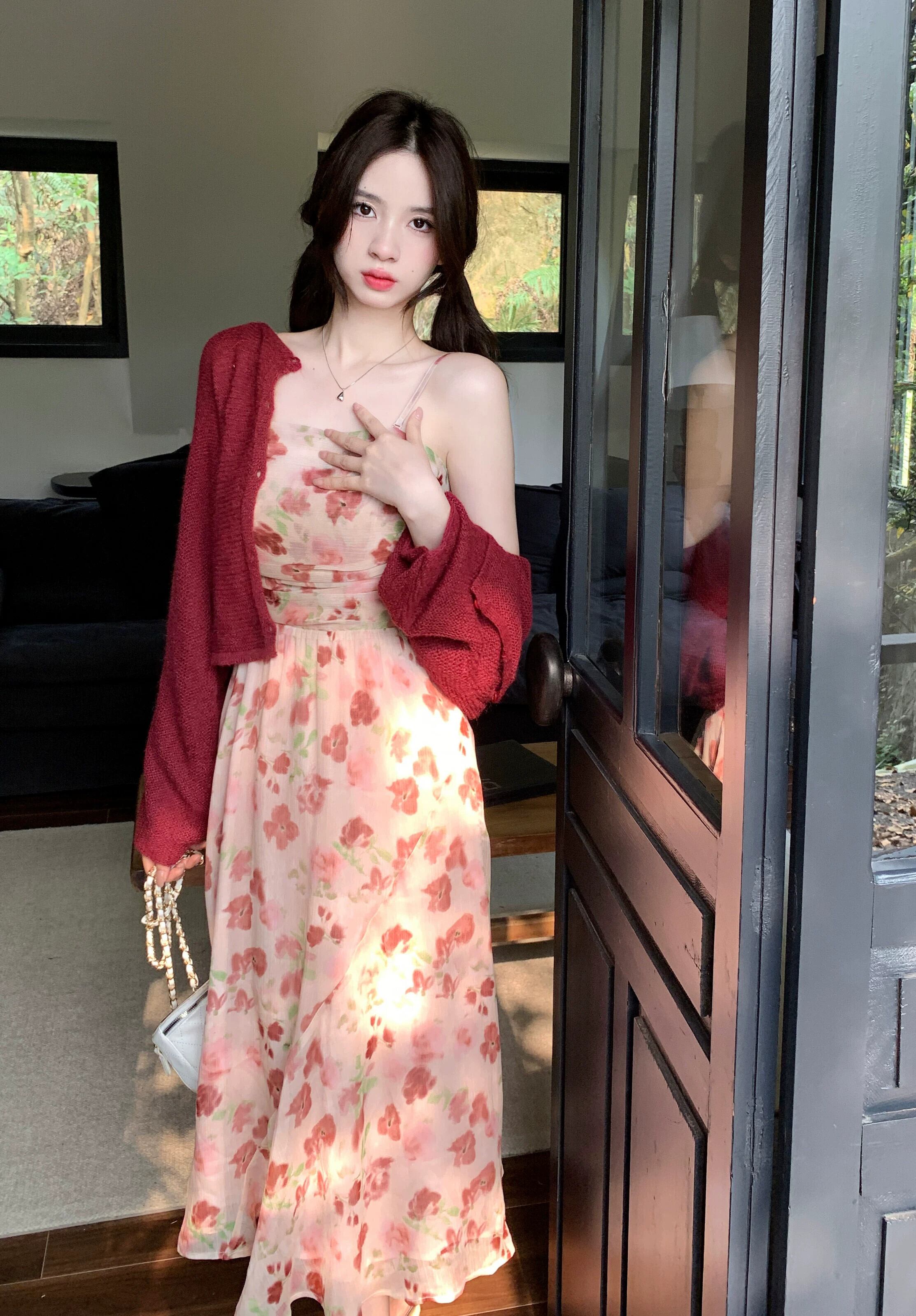 花柄スリングドレス女性の夏の 2023 新しいフレンチニッチレトロ優しいスタイルの美しいロングスカート サマー 夏物 8571627839904991
