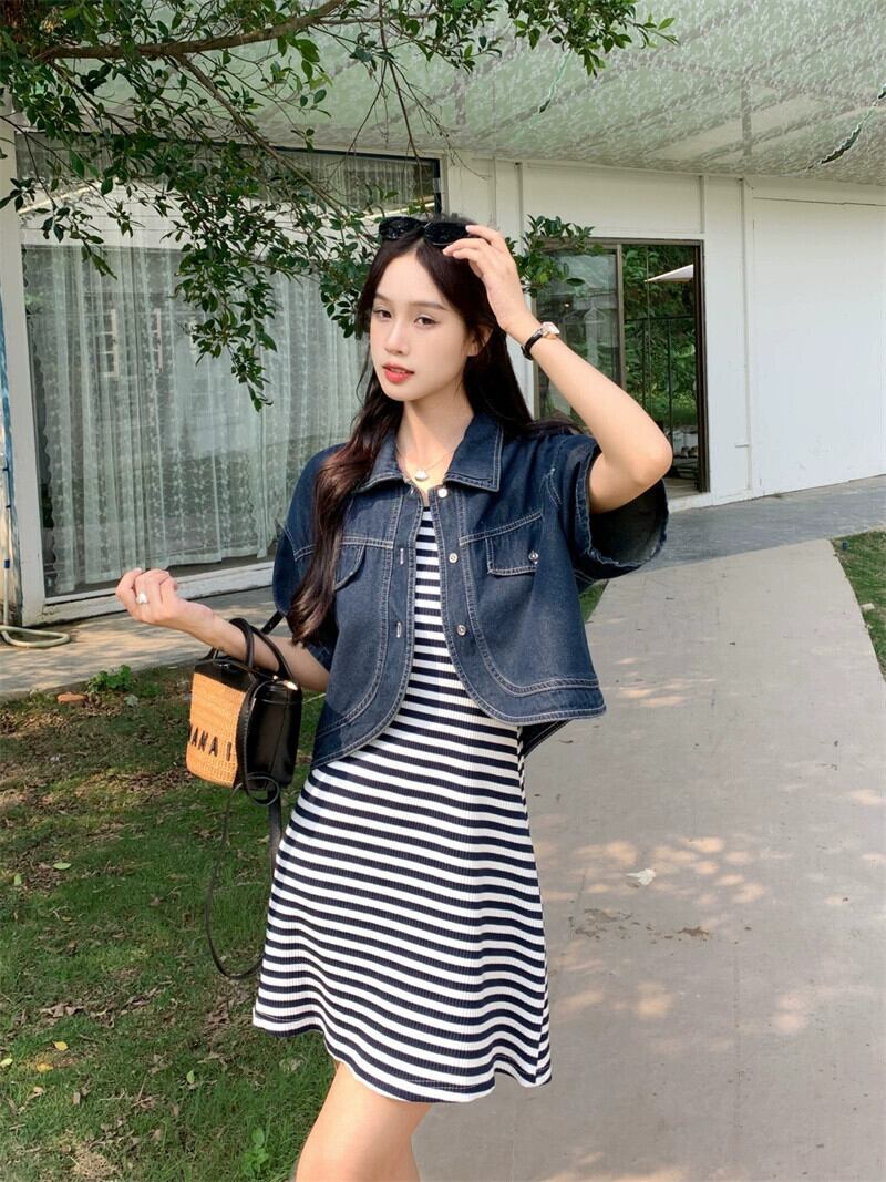 ライトブルー半袖デニムジャケットレディース夏薄セクション2023新しいスタイルユニークでシックなオールマッチショートトップ サマー 夏物 8571667059288386