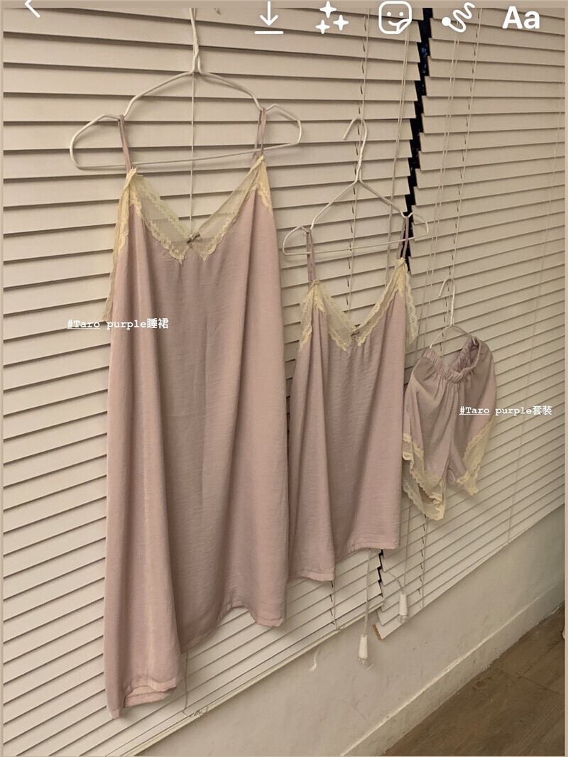 タロパープルスリングパジャマ女性の夏の薄いセクション 2023 新しい純粋な欲望インスタイル甘いショーツホームサービススーツ 大人ガーリー スウィート キュート カジュアル サマー 夏物 ブルマー ピュア 8571671641351103