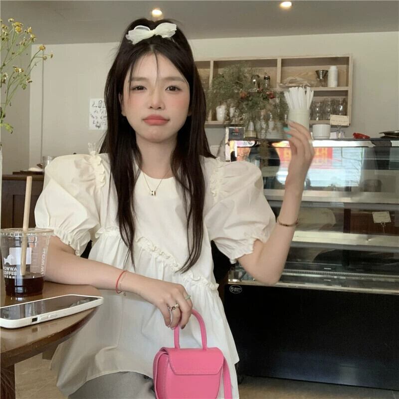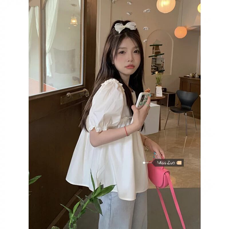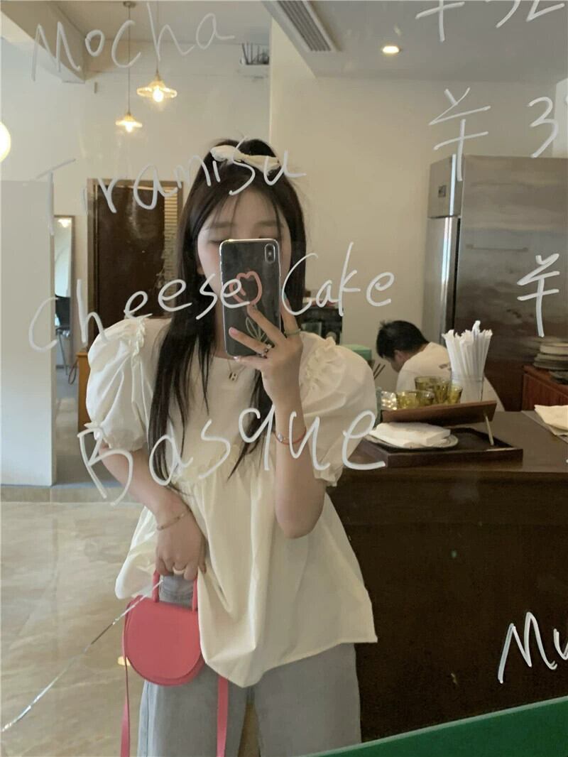 ドールシャツトップ女性の夏のデザインセンスニッチ2023新しいフレンチスタイルスイートベリーバブル半袖シャツ 大人ガーリー スウィート キュート カジュアル サマー 夏物 857164647826968