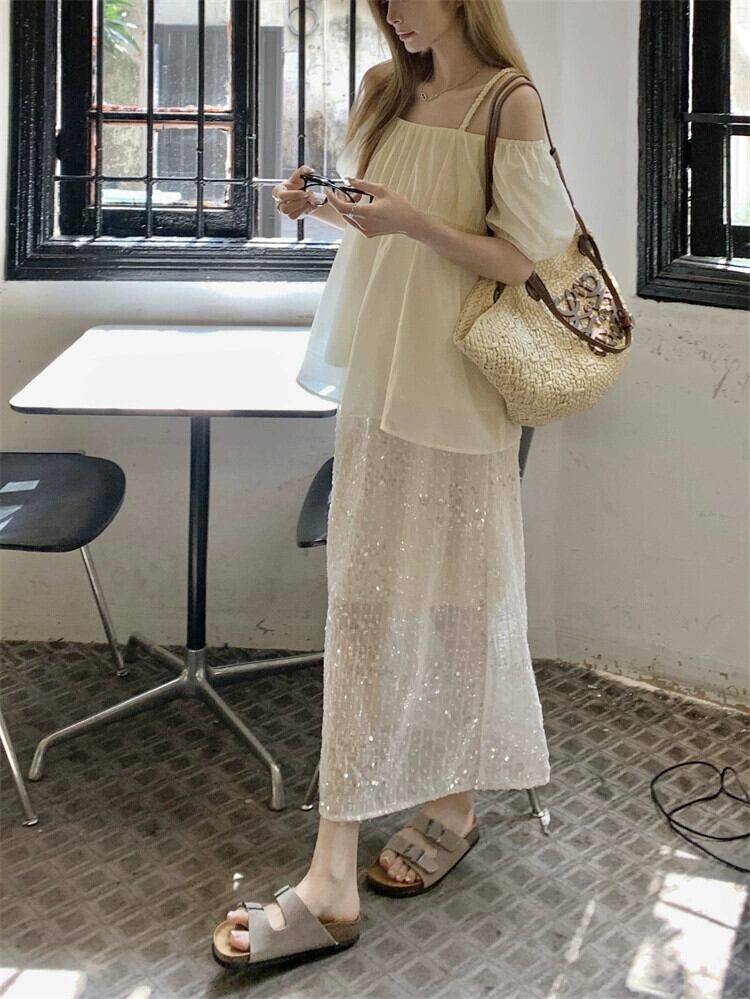 色:アプリコットトップ,スパンコールスカート