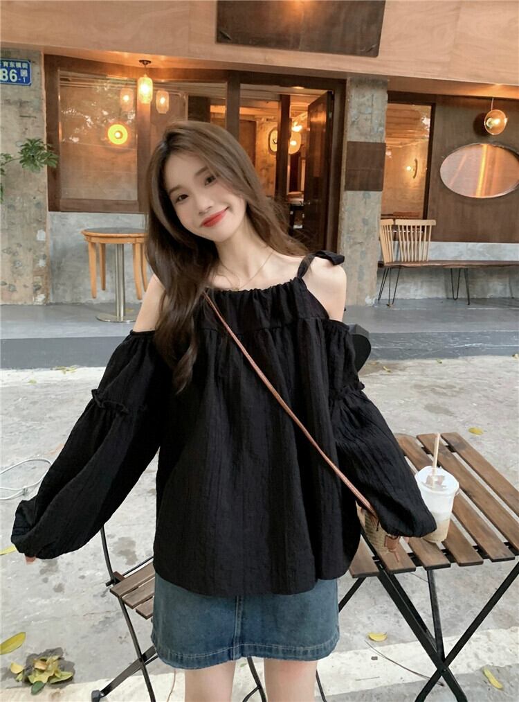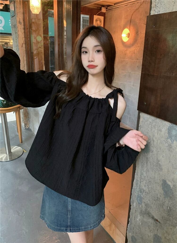 アプリコットオフショルダーシャツレディースデザインセンスニッチ2023春新作フレンチミルクスタイル優しいルーズショートトップ スプリング 春物 8571627934660952