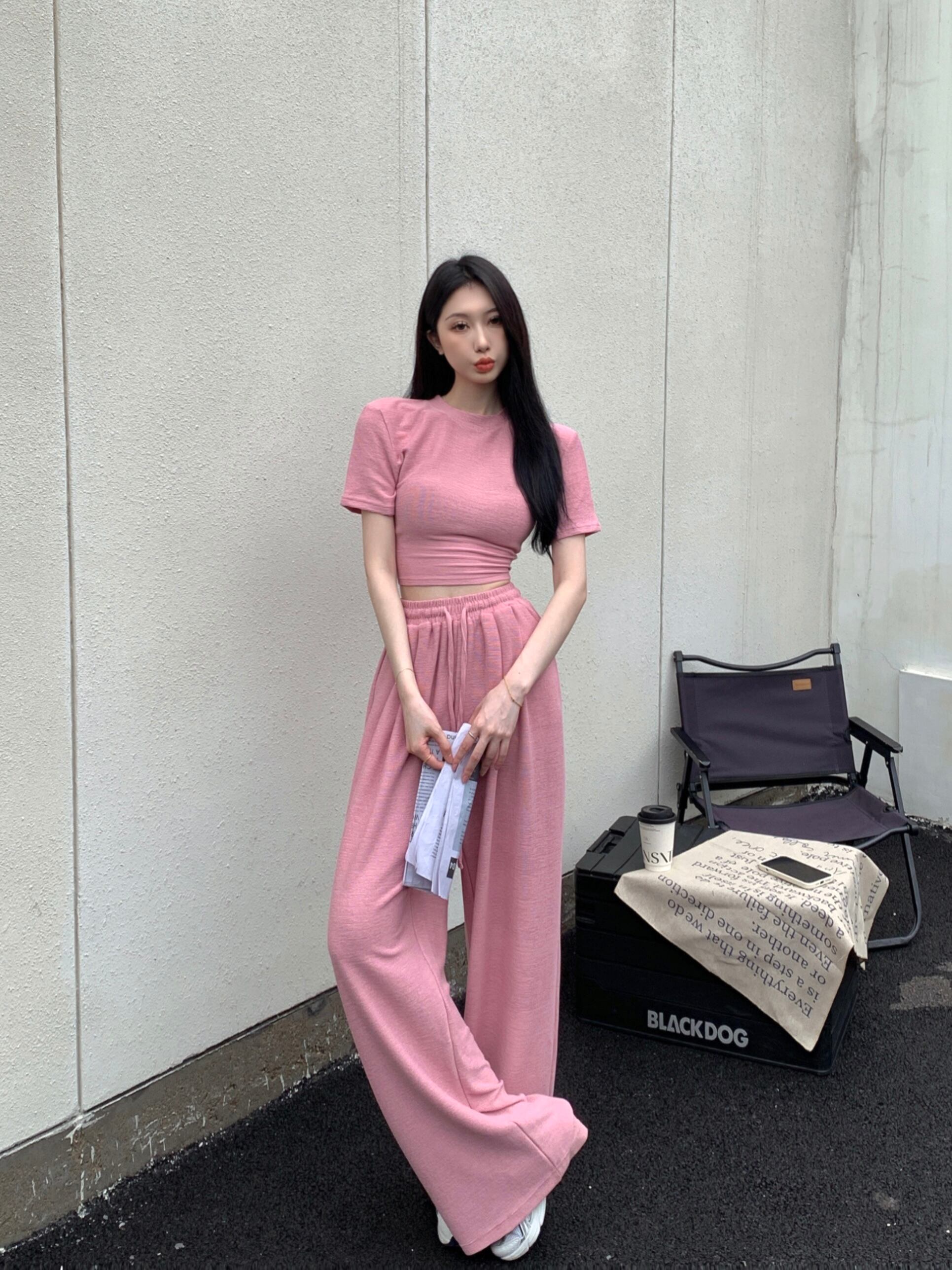 色:ピンクトップ,ピンクのパンツ,ブラックトップ,黒いズボン,ダークグレートップ,ダークグレーパンツ