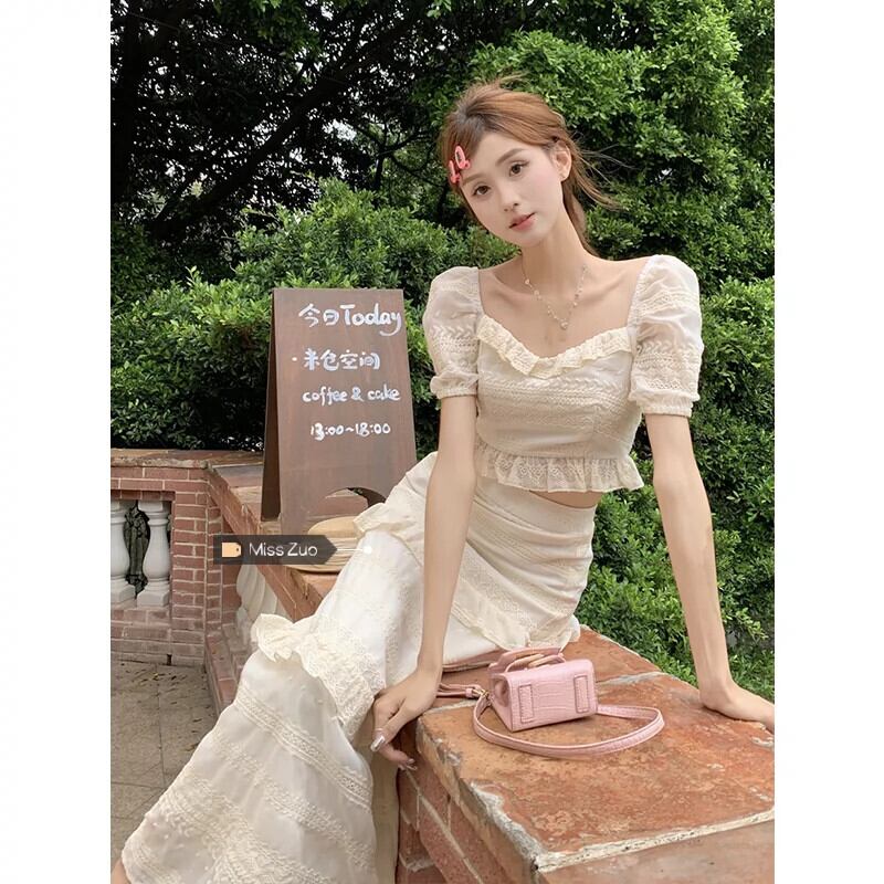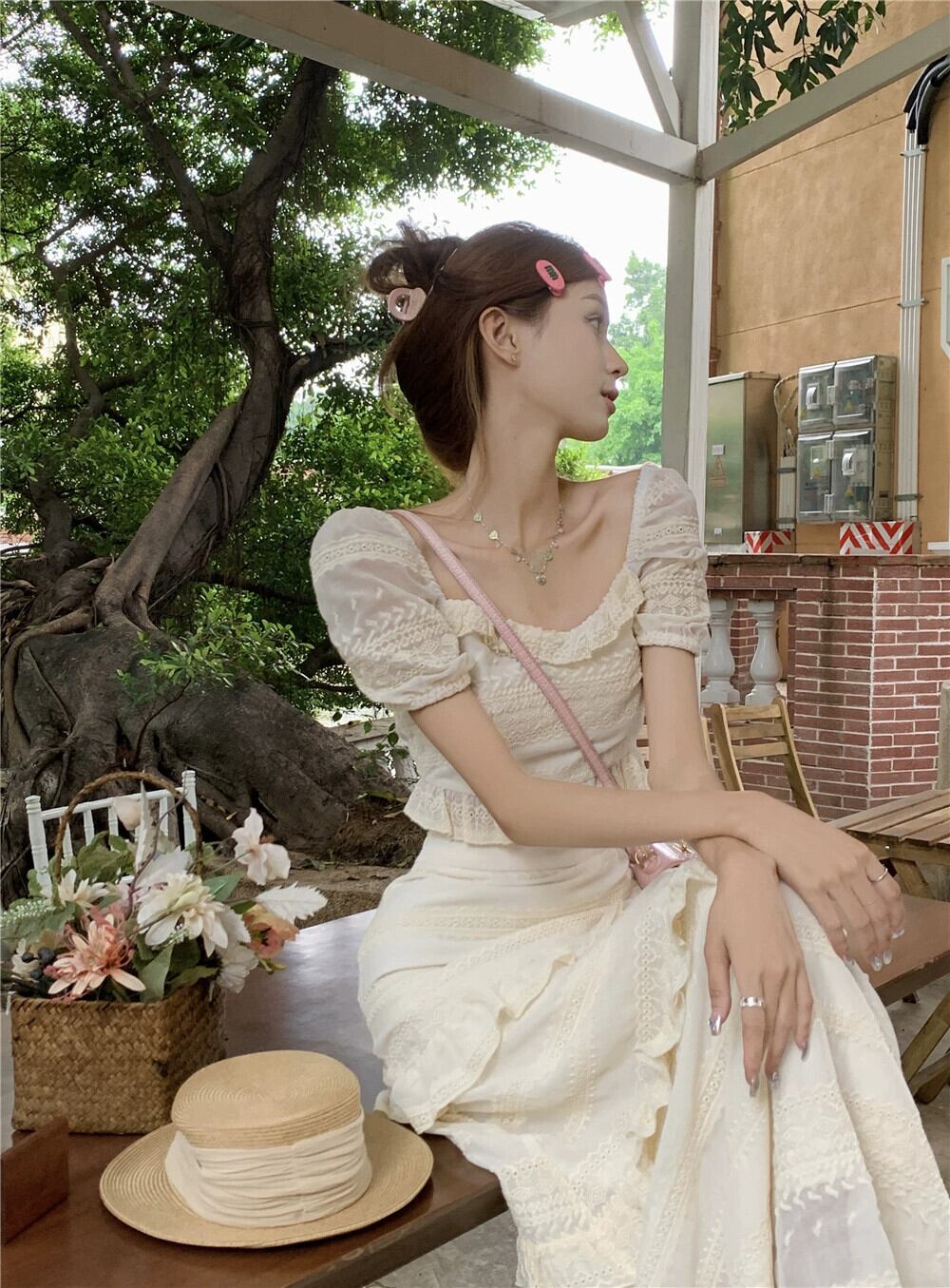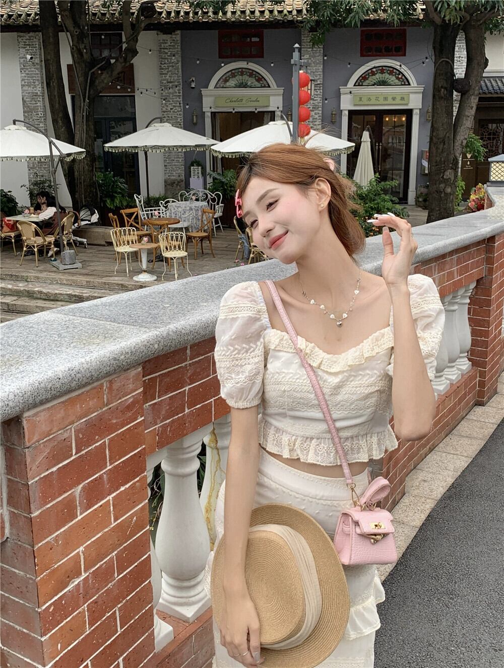 パフスリーブ半袖シャツ女性小男性夏2023新しいデザインセンスニッチスクエアカラーフレンチショートトップ サマー 夏物 スクウェア 8571694524887233