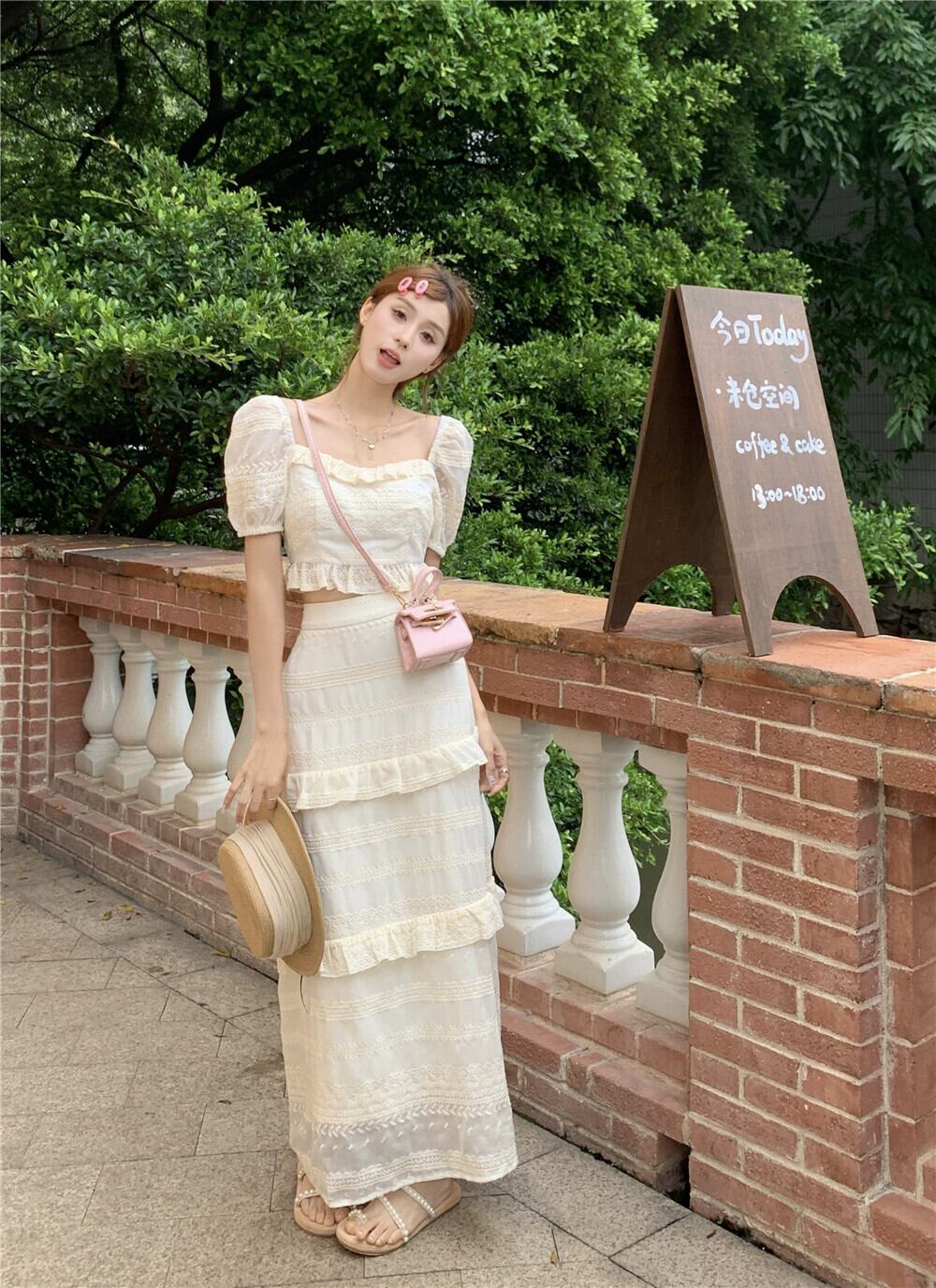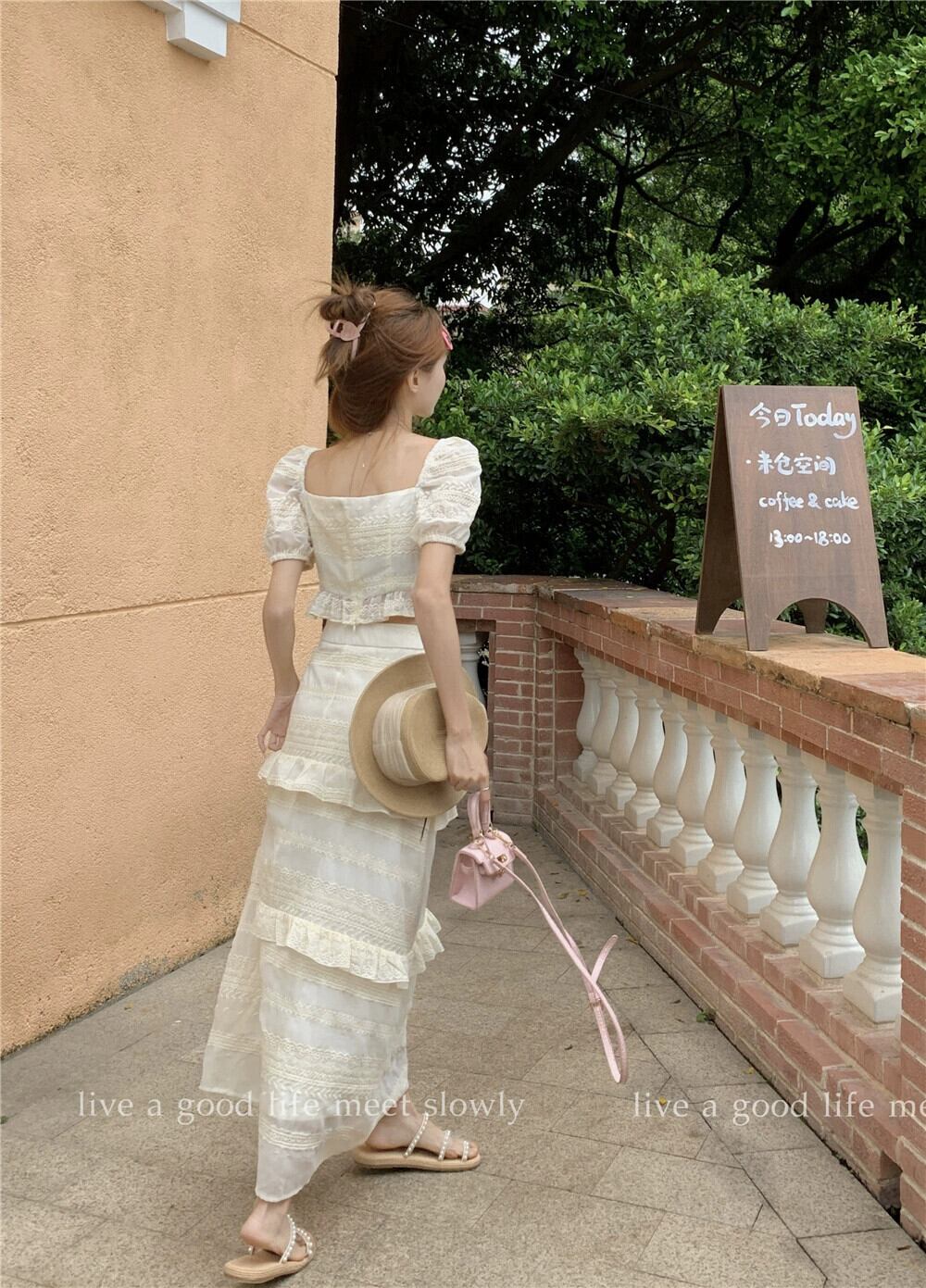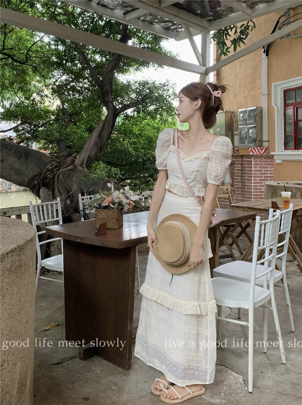 パフスリーブ半袖シャツ女性小男性夏2023新しいデザインセンスニッチスクエアカラーフレンチショートトップ サマー 夏物 スクウェア 8571694524887233