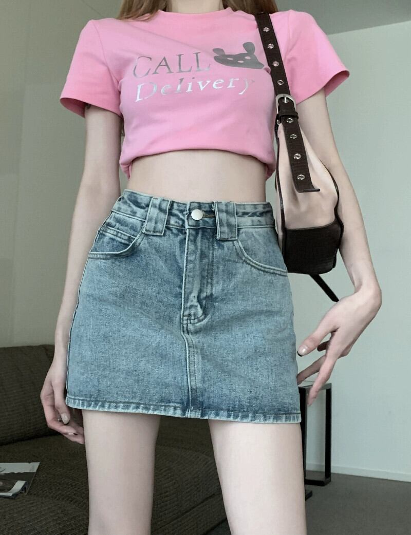 ウォッシュブルーデニムスカートの女性のハイウエスト A ラインスカート夏の新しい小男抗光パッケージヒップショートスカート ハイウェスト サマー 夏物 Aライン 8571660533914955