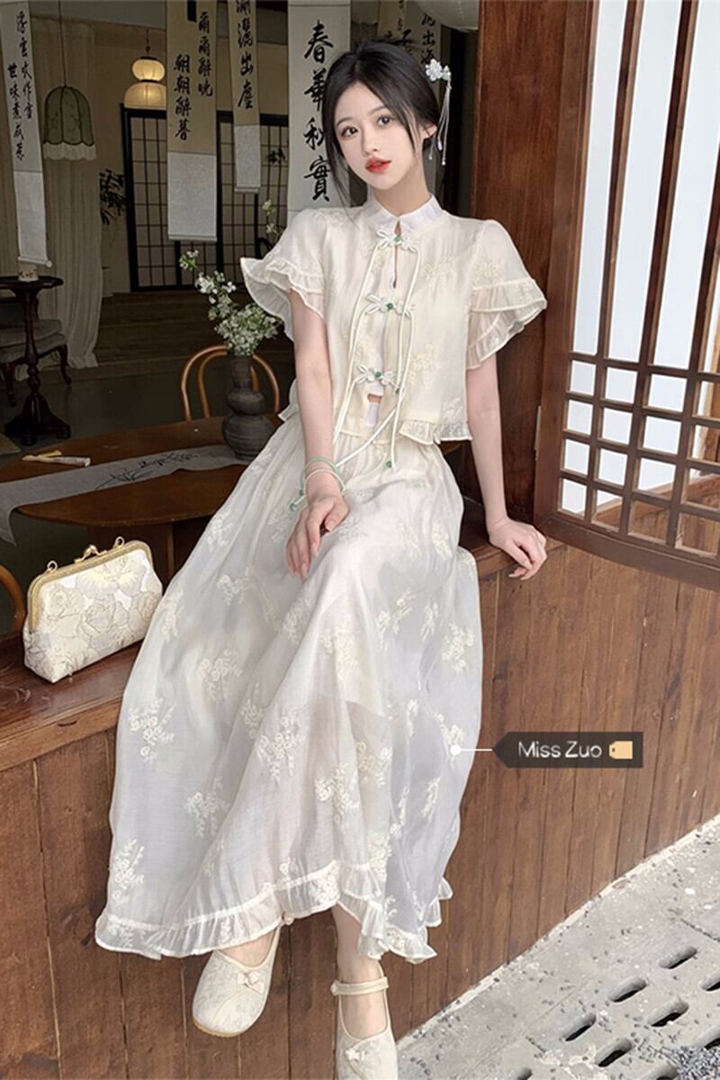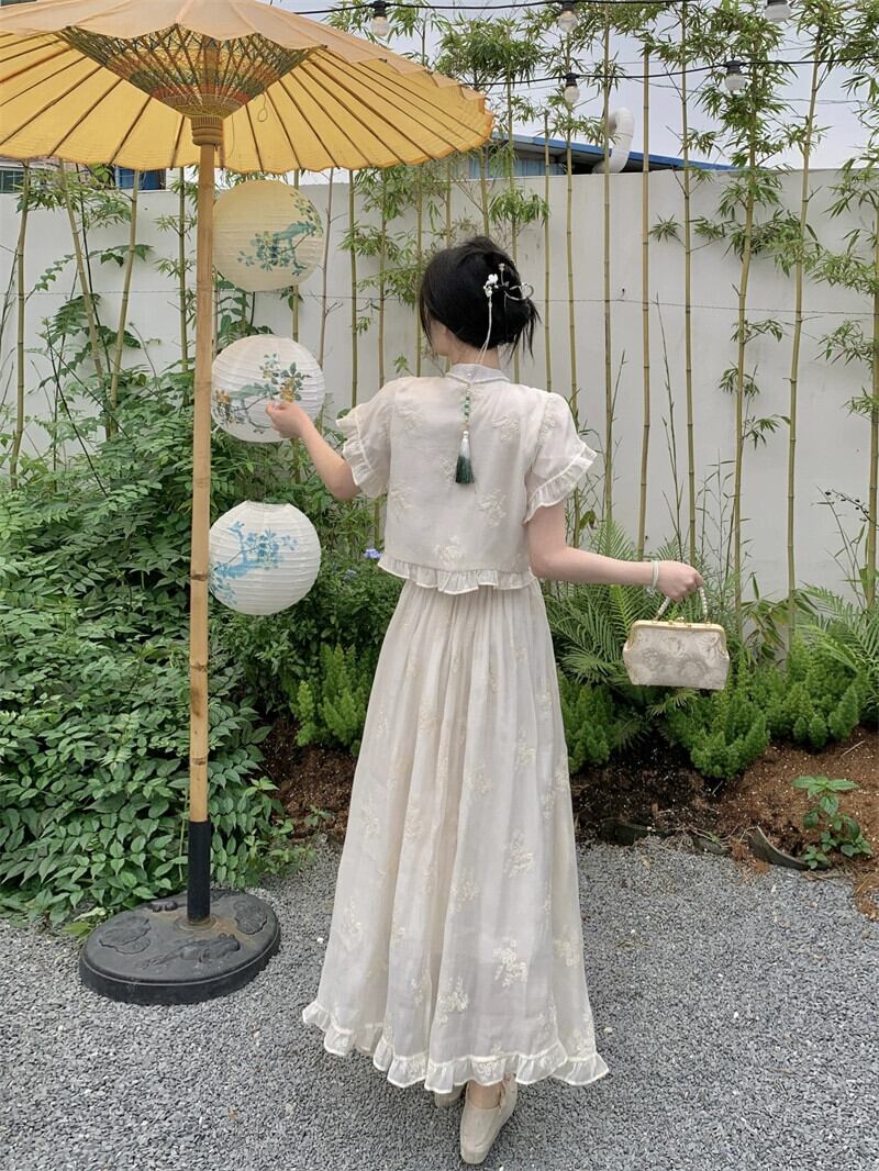 改良されたチャイナドレススタイルのバックルトップ女性の夏のデザインセンスニッチな新しい中国風国民風シックで美しい半袖シャツ サマー 夏物 8571638166973439