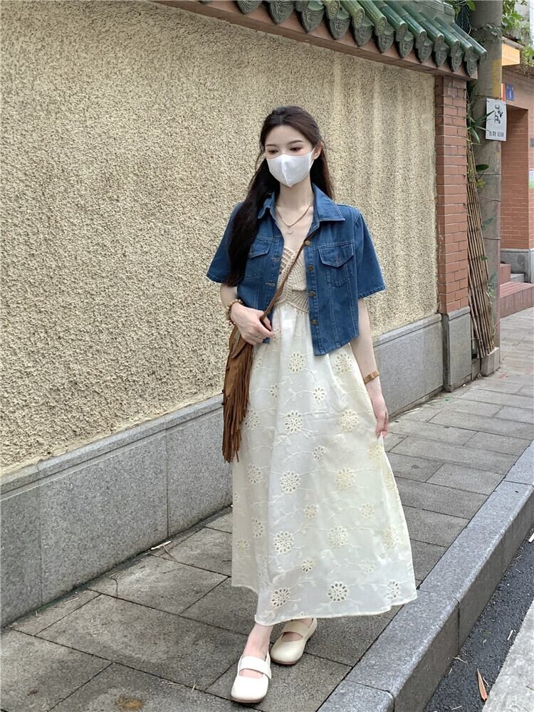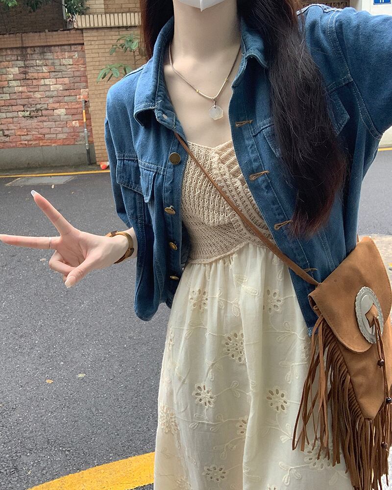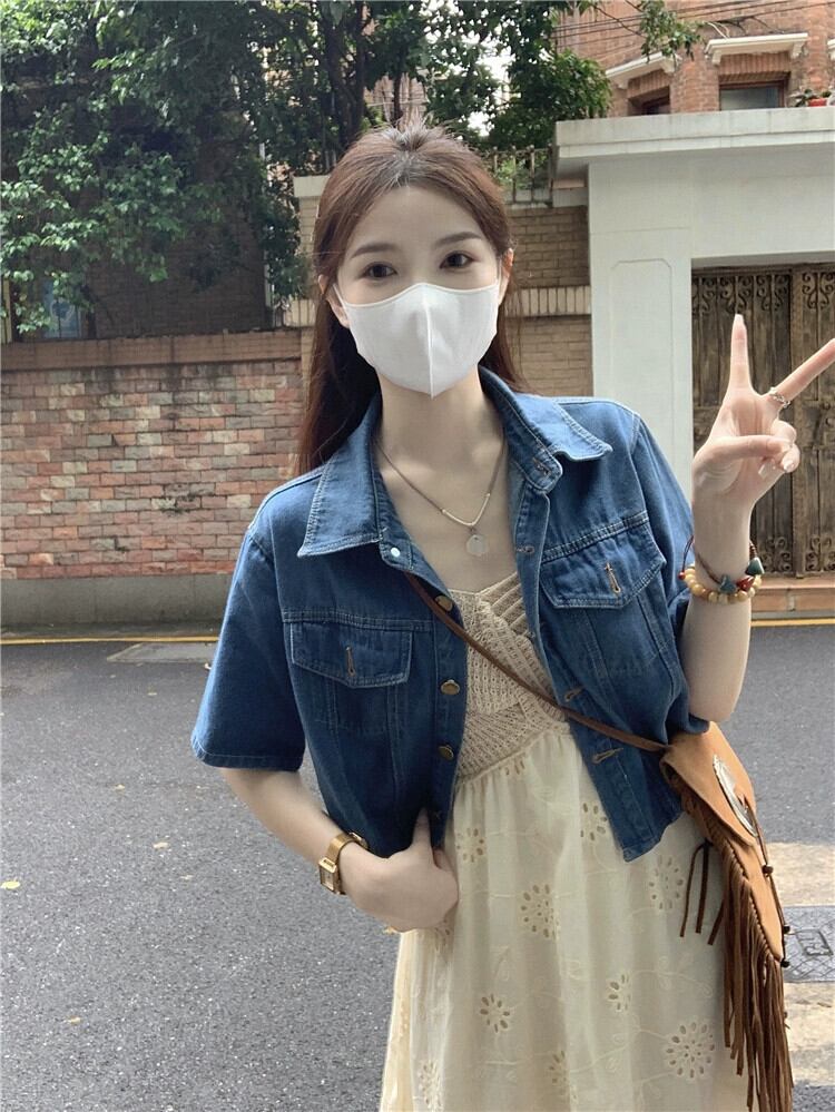 半袖デニムジャケット女性小男性夏 2023 新しい香港スタイルのレトロシックなオールマッチショートトップ サマー 夏物 8571648685927313