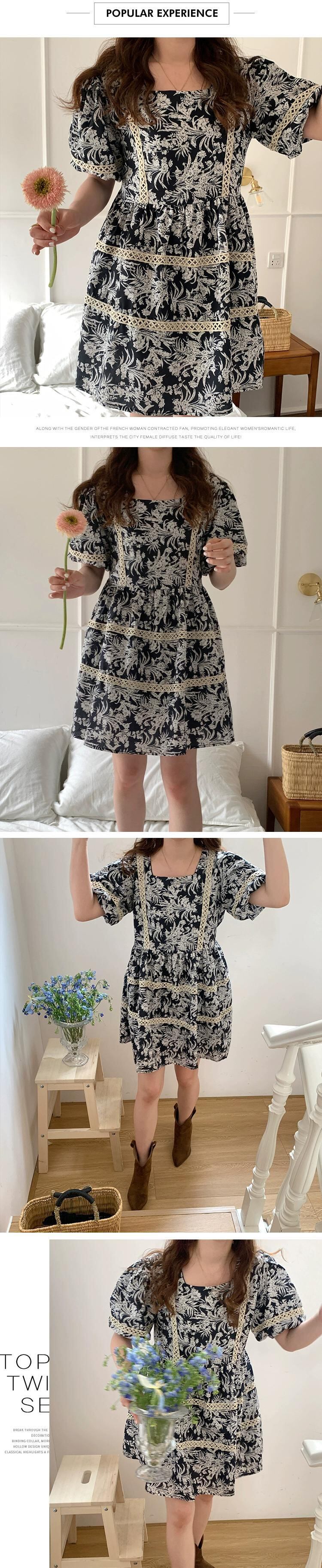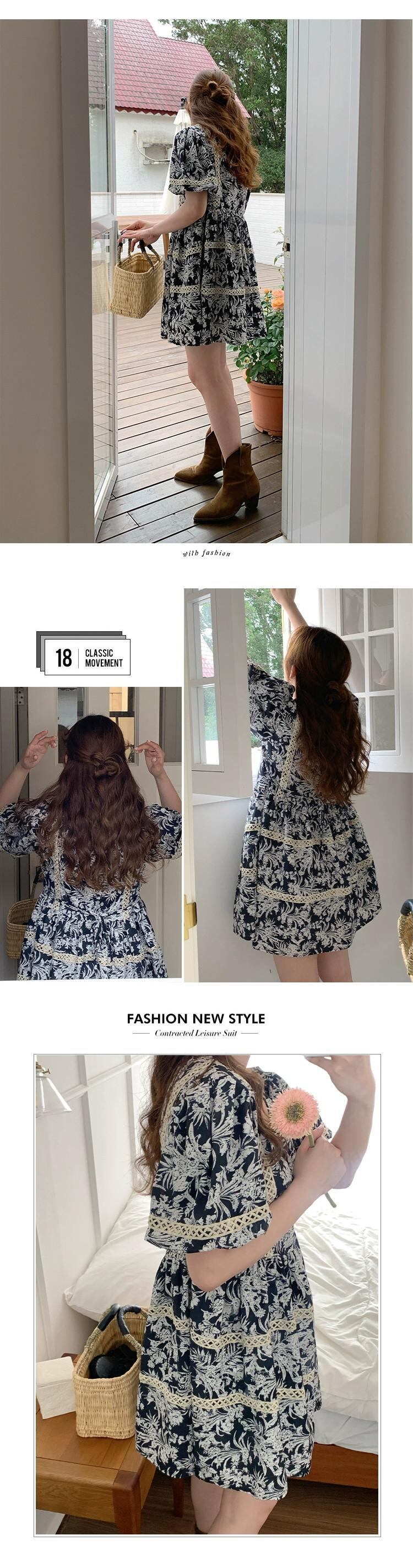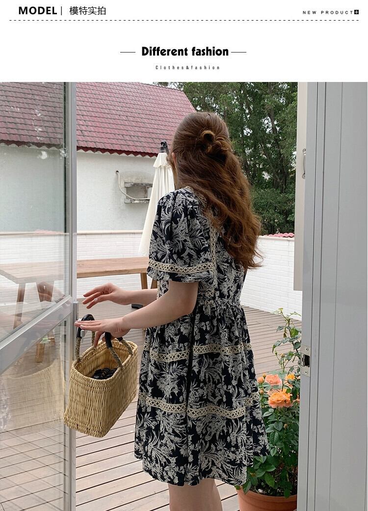 ブルーの花柄ドレスの女性の 2023 夏の新しいデザインセンスニッチフランスの気質の先進的なセンスの薄いスカート サマー 夏物 8571660424233810