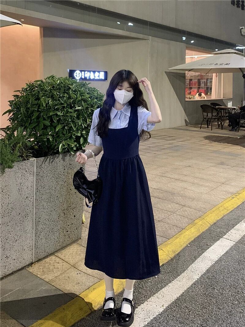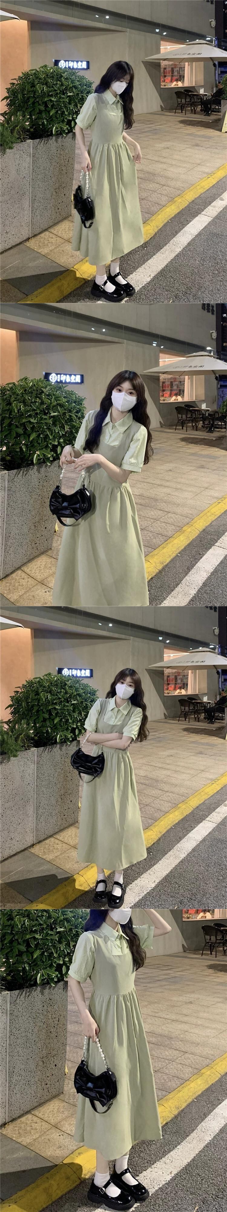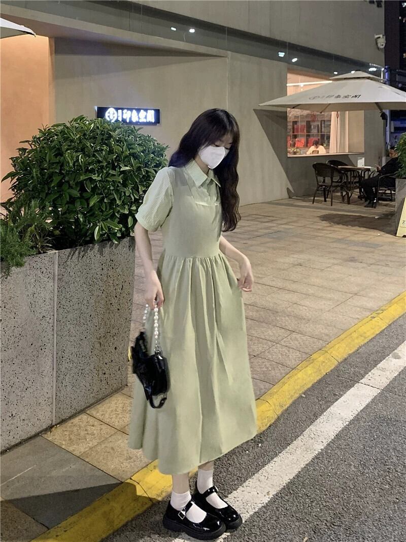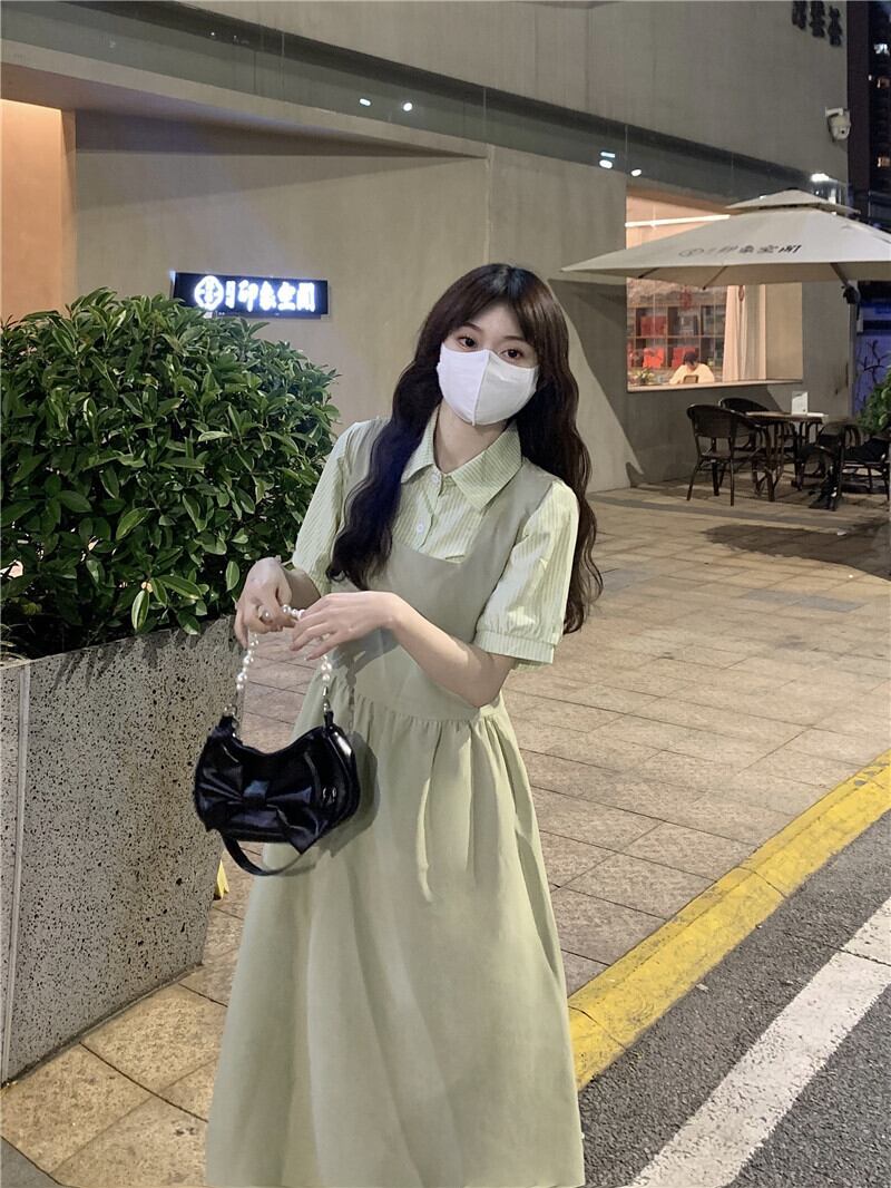 グリーンサスペンダースカートドレス女性夏新作ミルクふふ甘い初恋優しい風ロングスカートツーピーススーツ 大人ガーリー スウィート キュート カジュアル サマー 夏物 8571659121470338