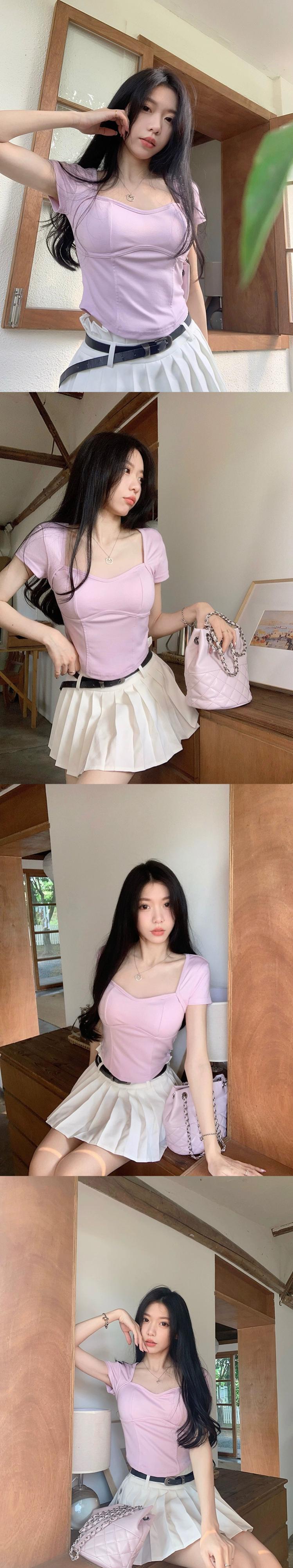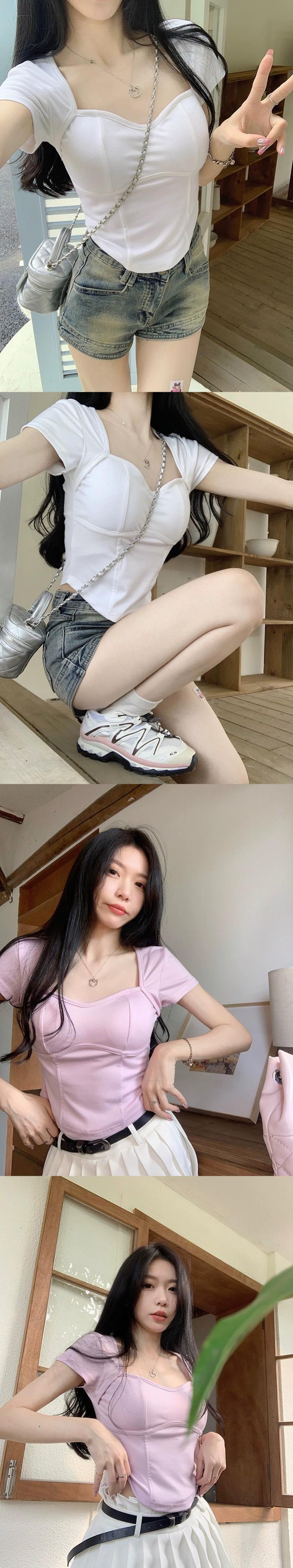 ショートフィッシュボーントップ女性の夏の純粋な欲望のユニークで絶妙なスリムスクエアカラー鎖骨白半袖Tシャツ ホワイト サマー 夏物 ピュア スクウェア 8571663603949058