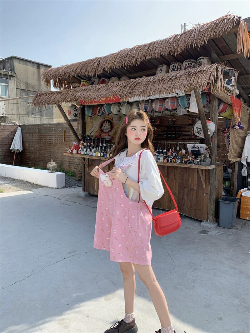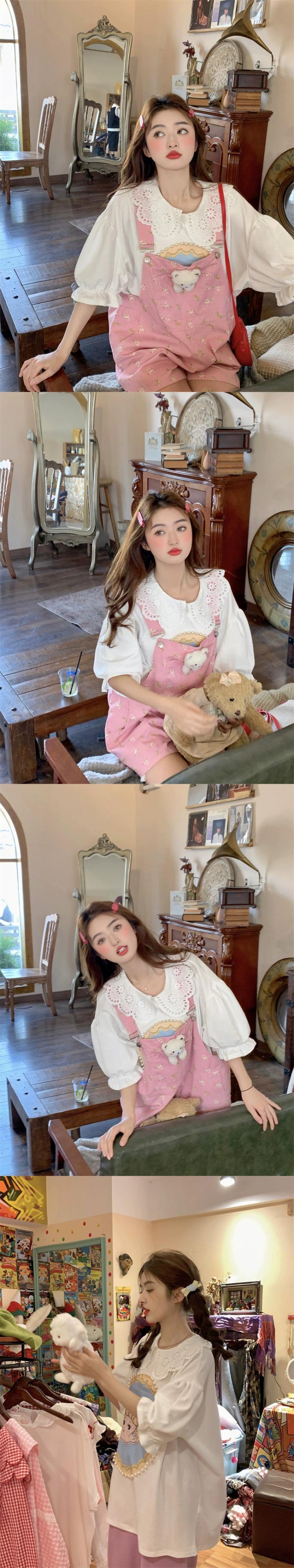 色:ドールカラーTシャツ,ピンクのオーバーオール