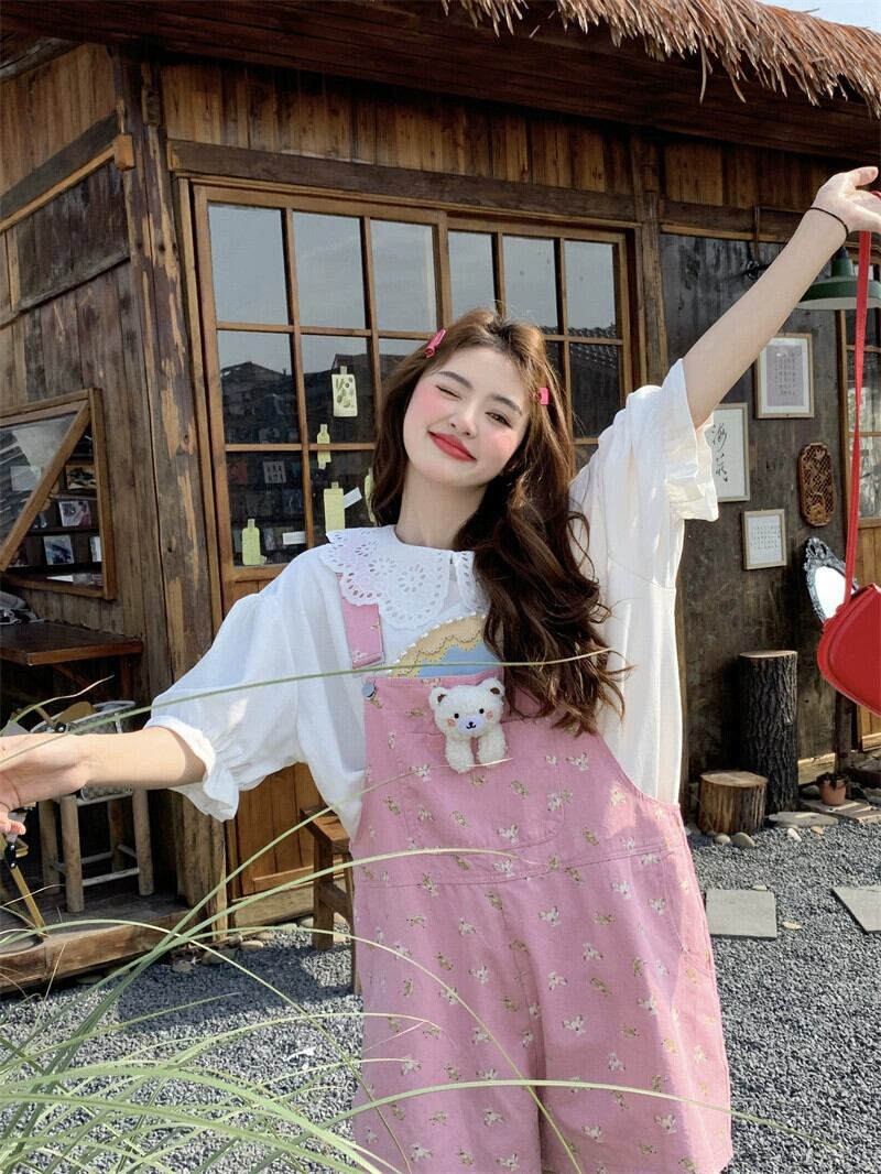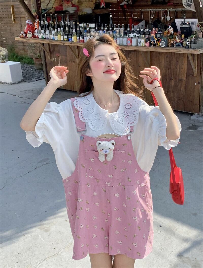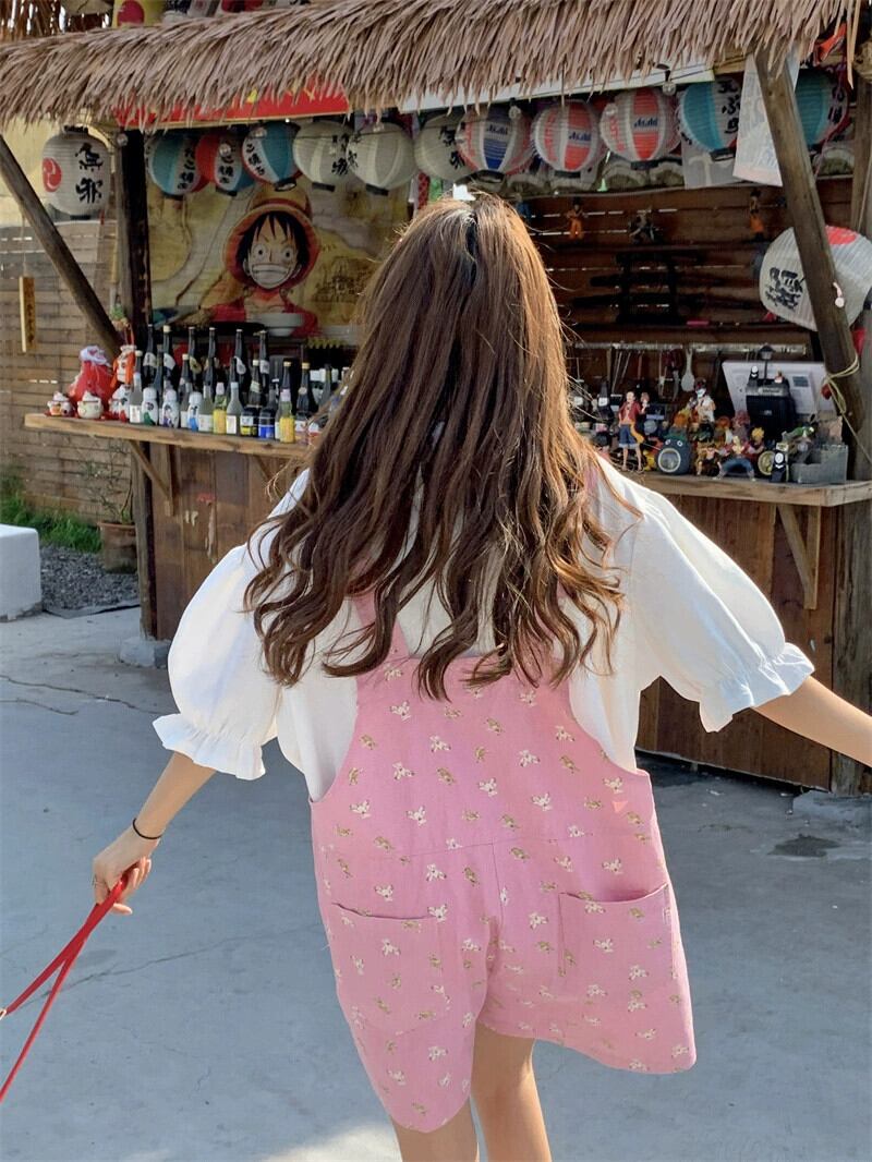 森のオーバーオール ショートパンツ レディース ルーズ ストレート ワイドレッグ パンツ 2023 夏新作 ピンク パンツ カジュアル オールマッチ サマー 夏物 ショーツ ブルマー 8571613440857293