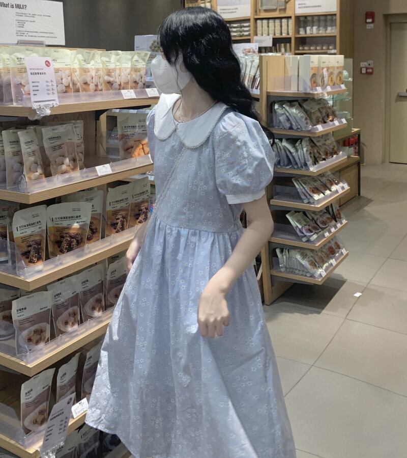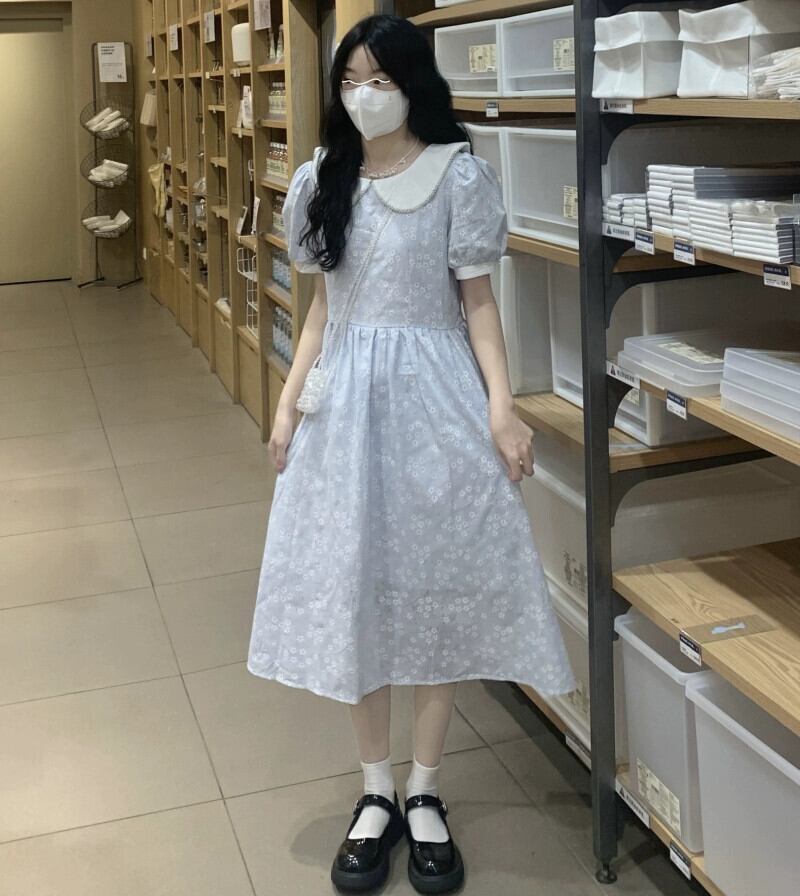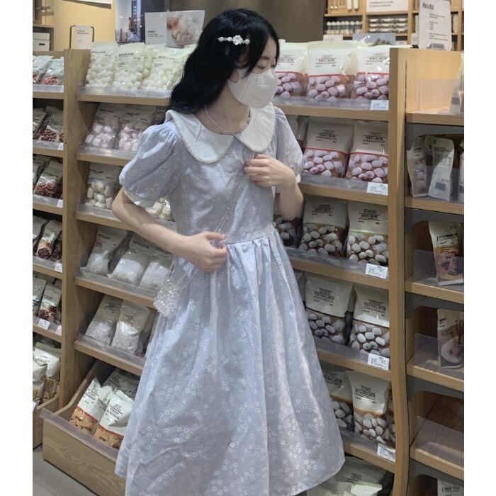 人形襟花柄ドレス女性の夏 2023 新しいフレンチエストスタイル初恋甘いデザインセンスニッチスカート 大人ガーリー スウィート キュート カジュアル サマー 夏物 8571697644187396