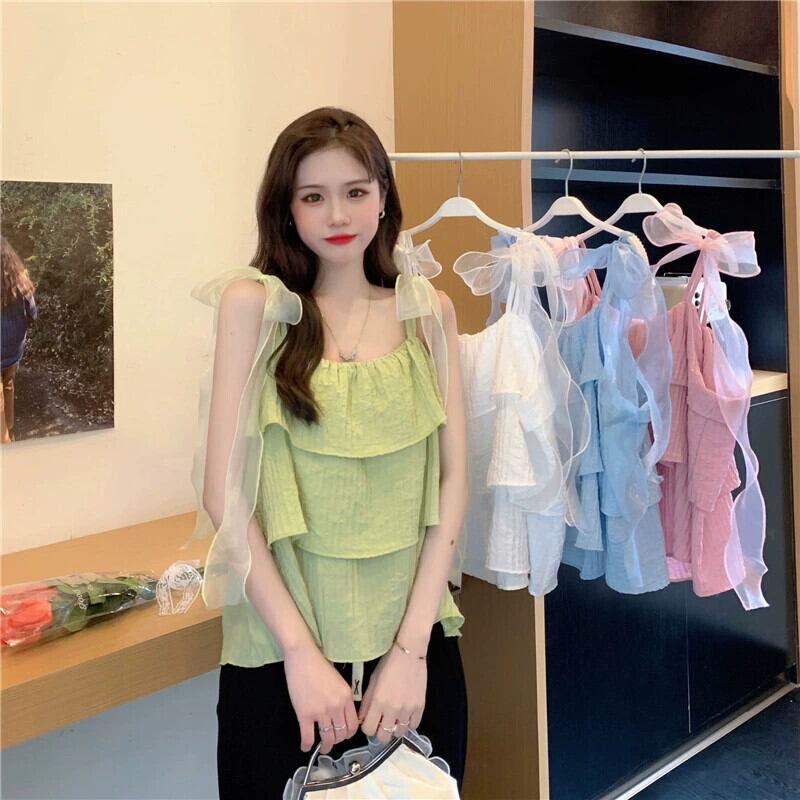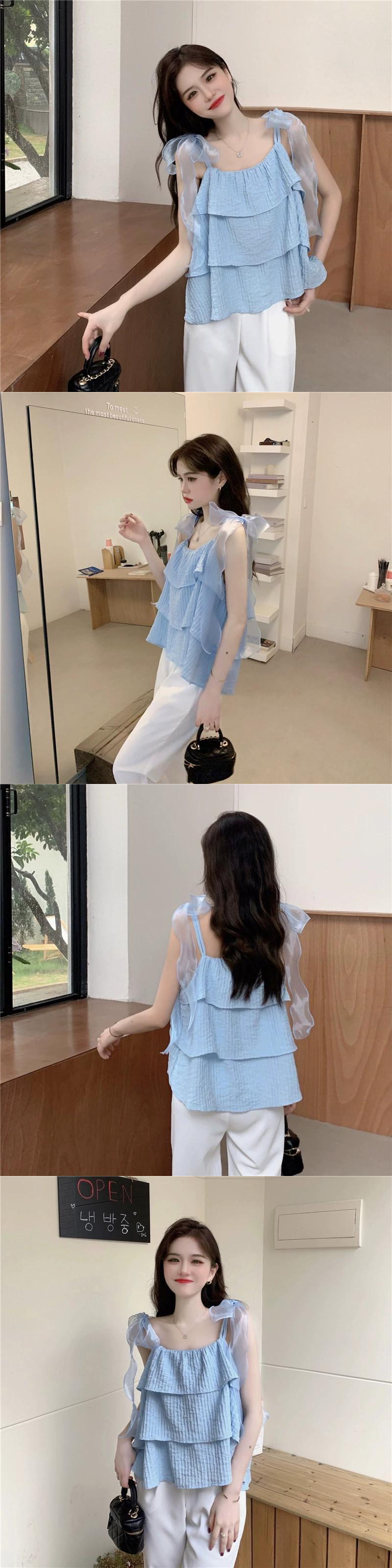 ブルー キャミソール レディース アウター 夏感覚 小人 スイート ユニーク ユニーク フリル ドール シャツ トップス 大人ガーリー スウィート キュート カジュアル サマー 夏物 8571697176374585