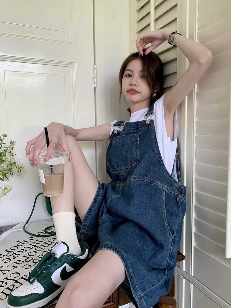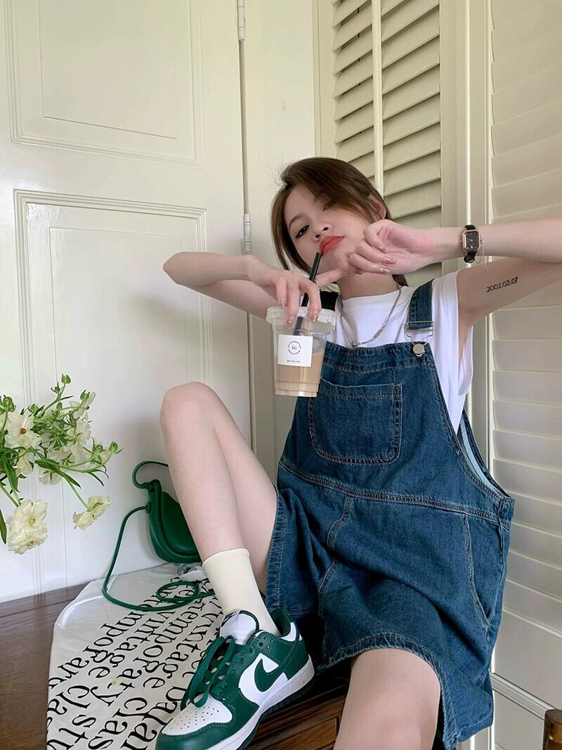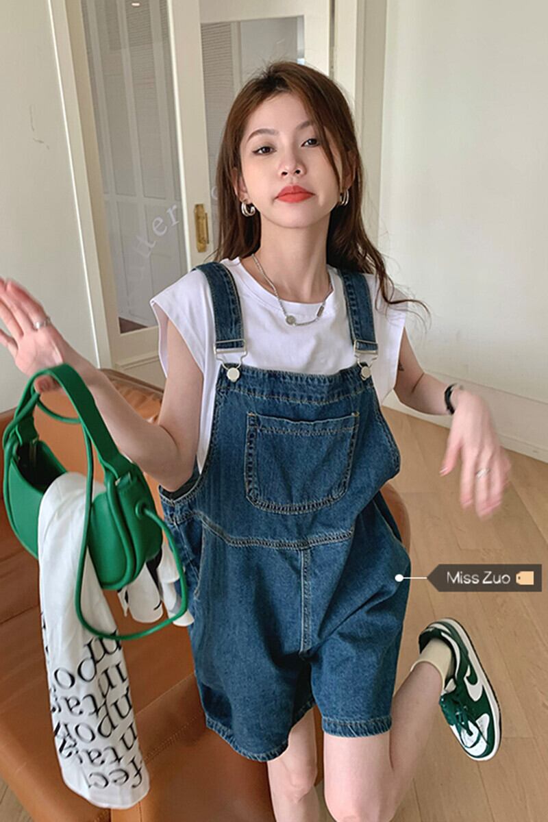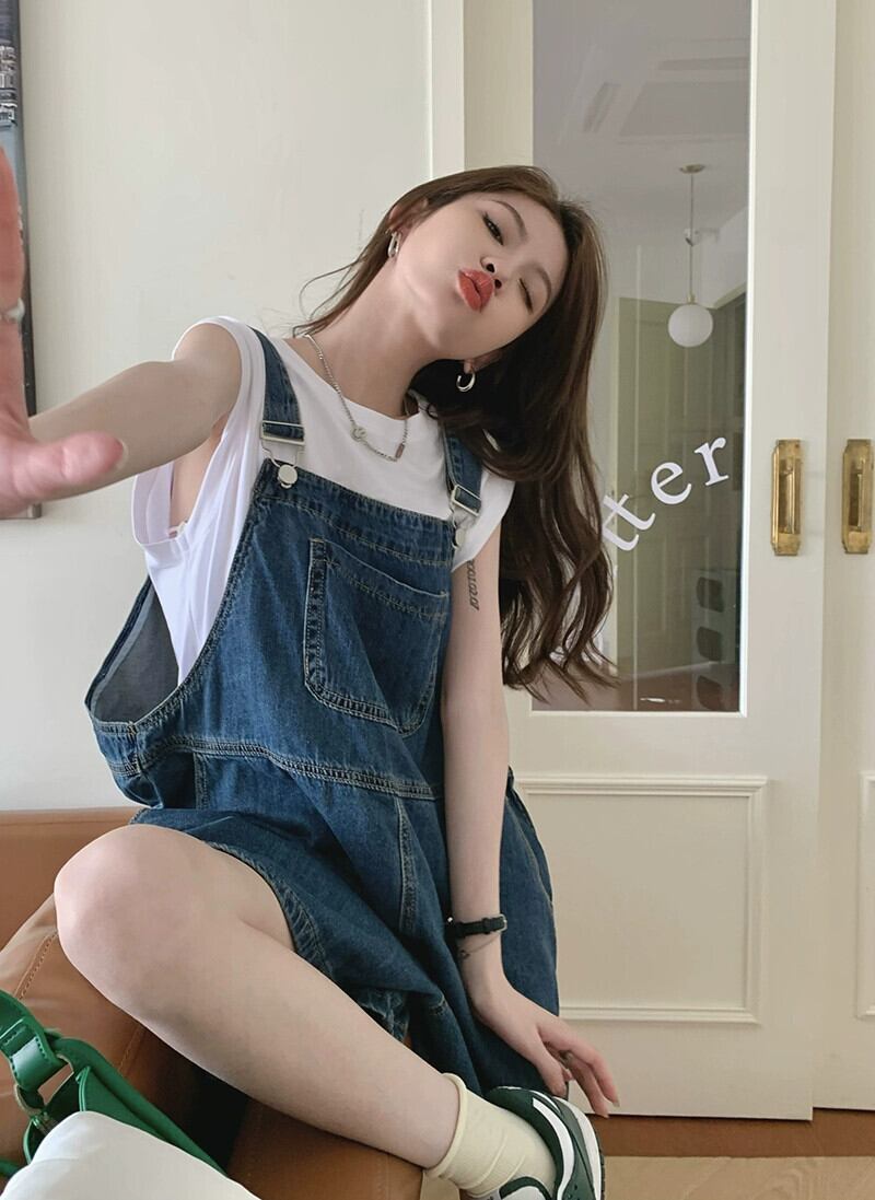 ミルクフフデニムストラップショーツ女性小さなジャンプスーツ夏2023新しいeignスタイル年齢を軽減するワイドレッグパンツ サマー 夏物 ブルマー 8571687471119676