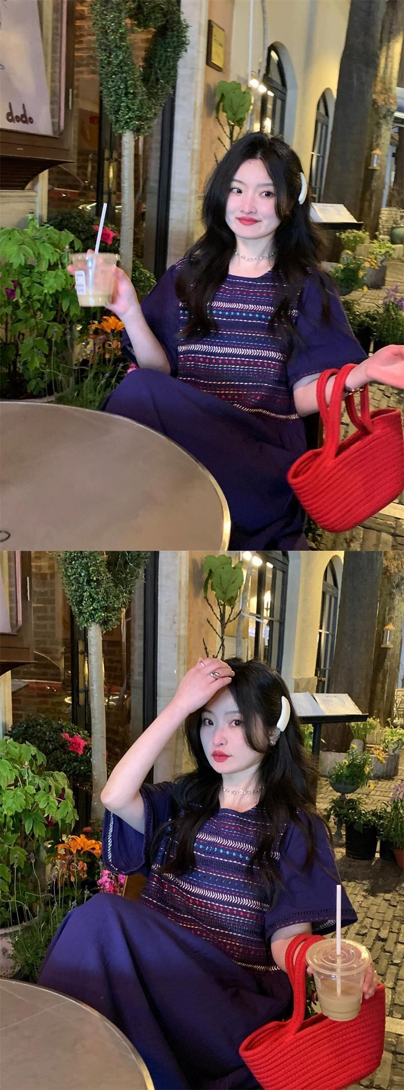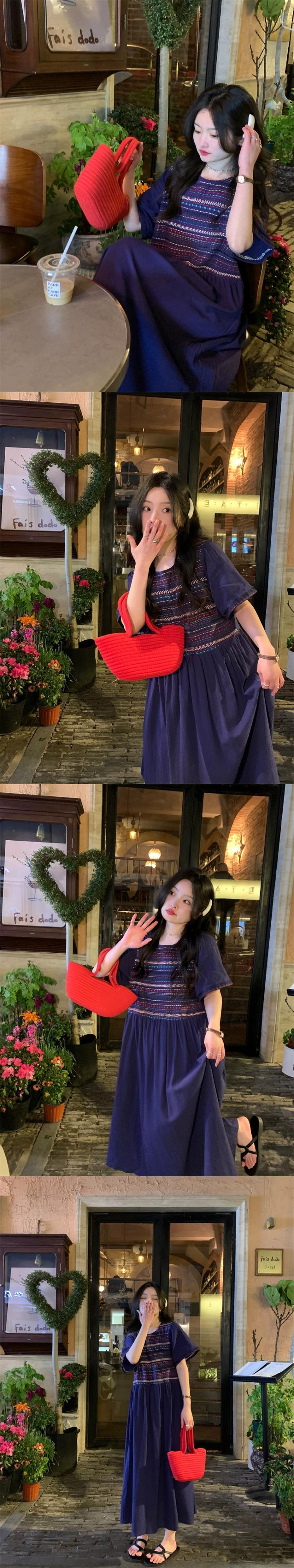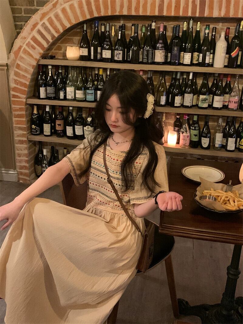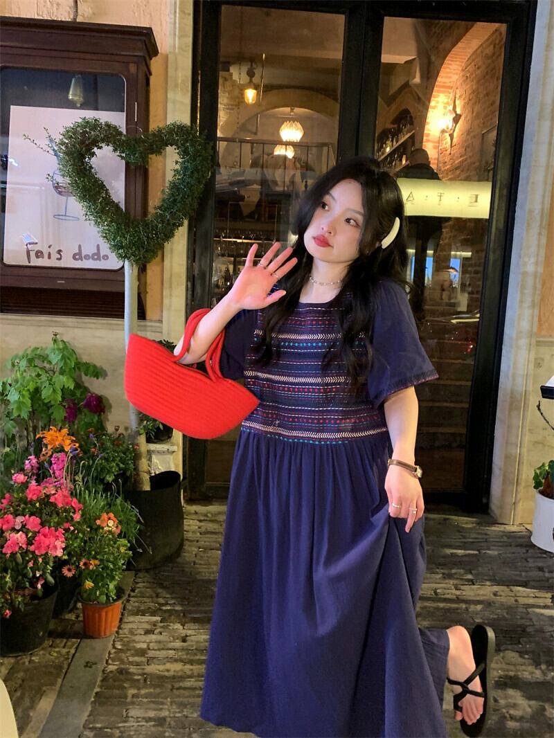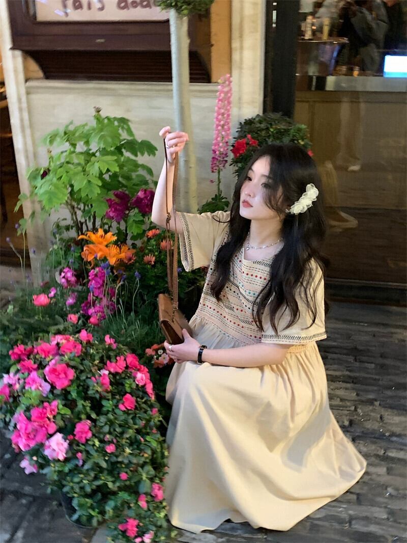 重工業刺繍半袖ドレス女性の夏ニッチデザインセンスフレンチ甘い初恋優しい休日ロングスカート 大人ガーリー スウィート キュート カジュアル サマー 夏物 8571641577092921