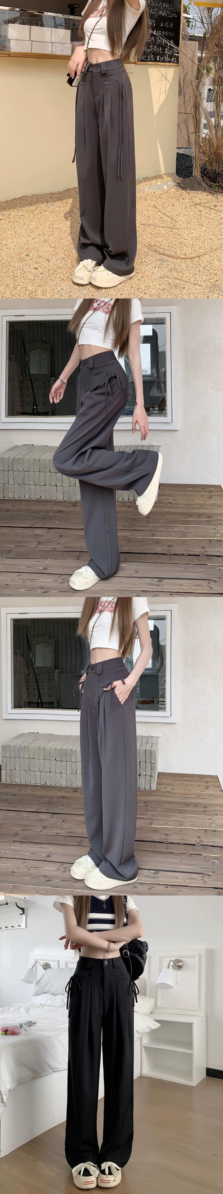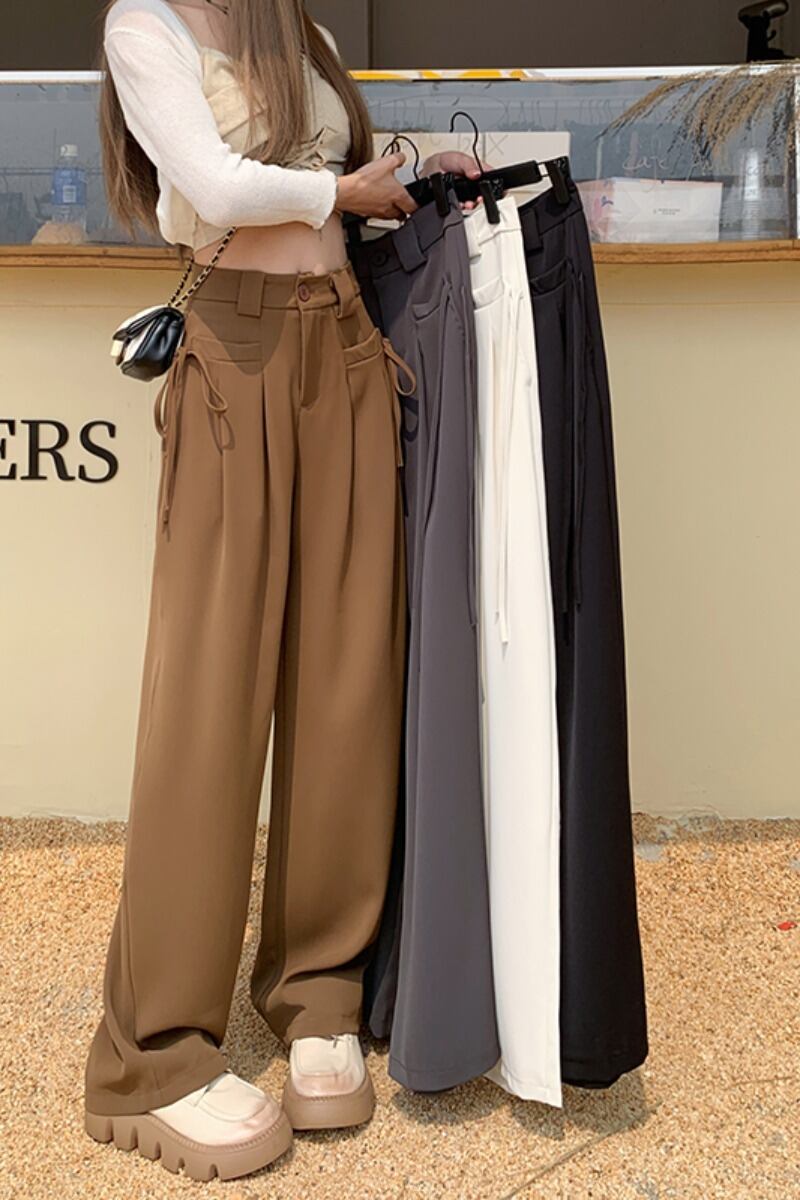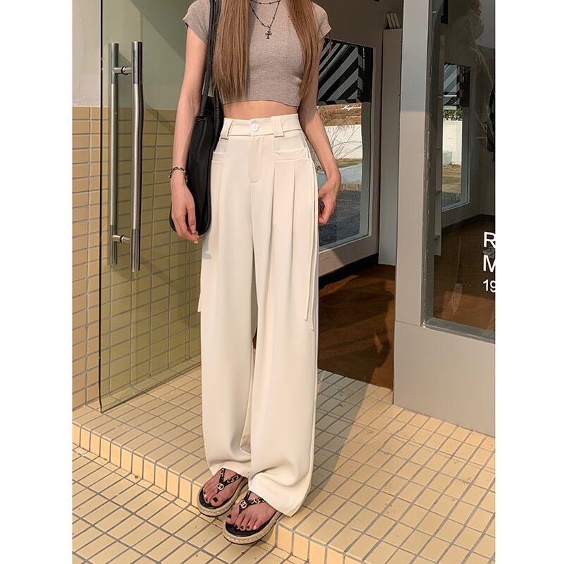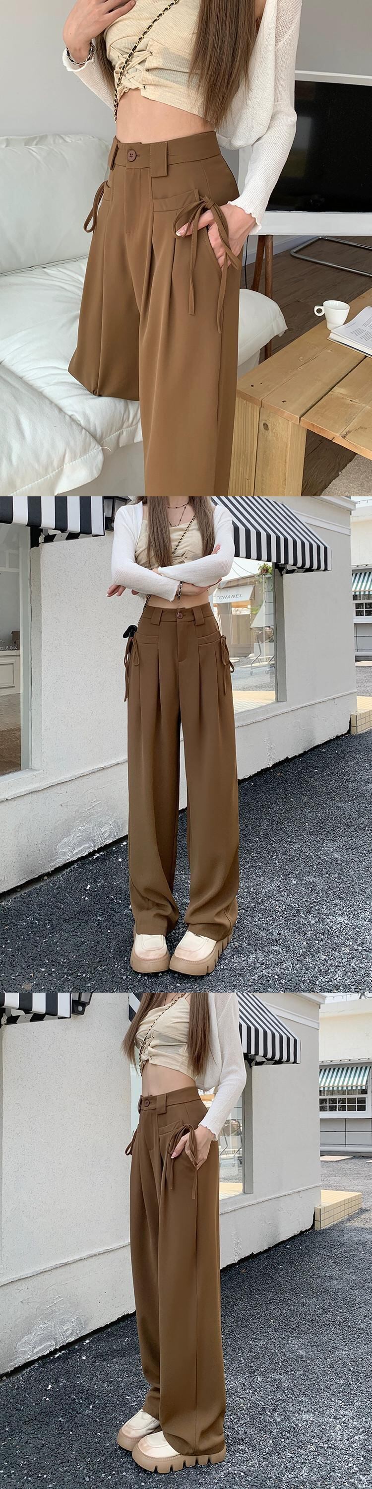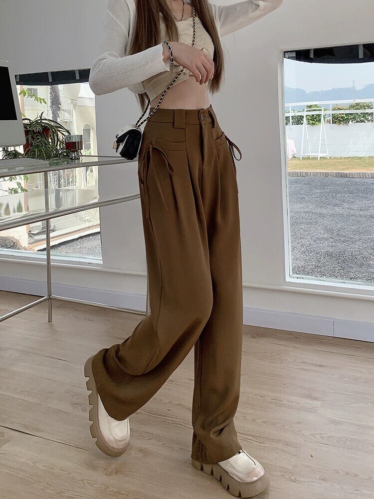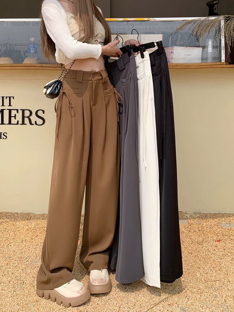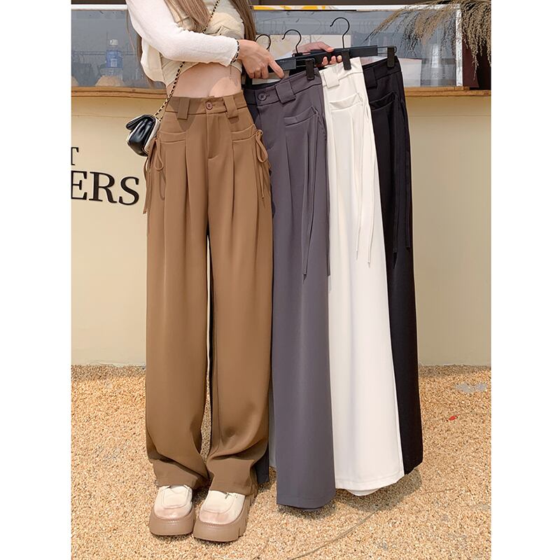 コーヒーカラースーツパンツレディースハイウエストドレープナローバージョンワイドレッグパンツ夏デザインセンスニッチストレートカジュアルフロアモップパンツ ハイウェスト サマー 夏物 ワイドパンツ 8571682828198613