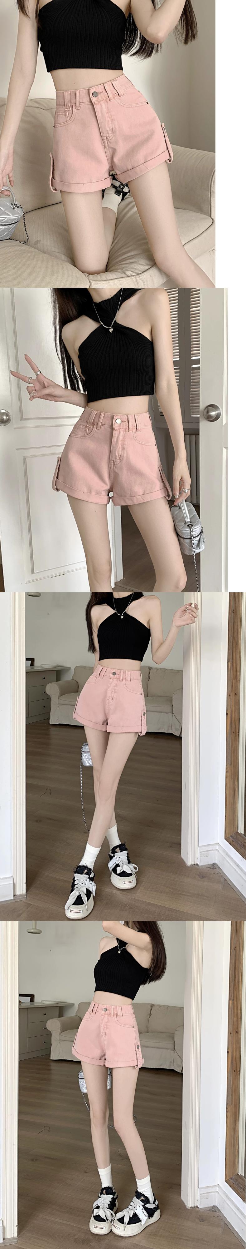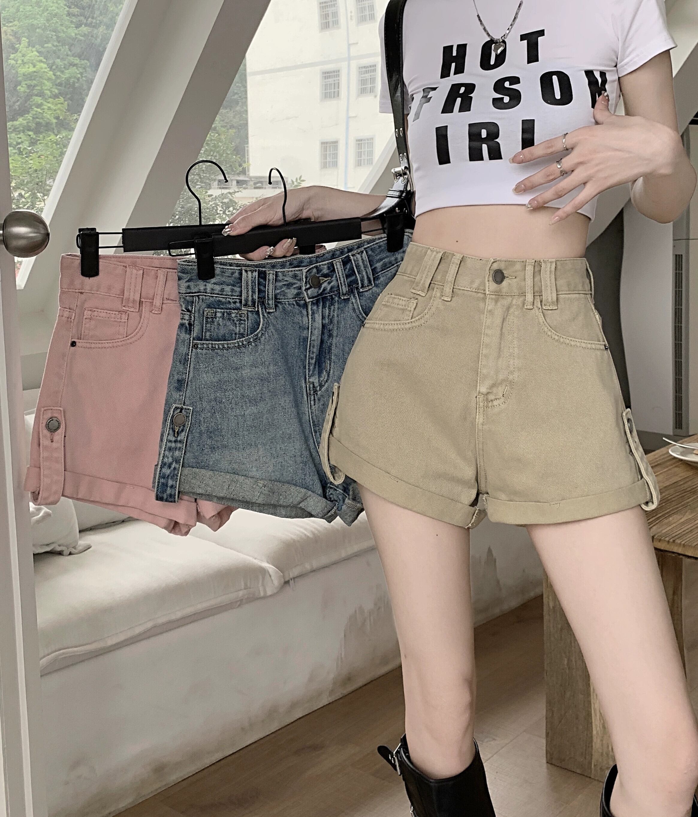カーキロールエッジデニムショートパンツ女性の夏ハイウエスト細いストレートデザインセンスニッチワードパンツ ハイウェスト サマー 夏物 ショーツ ブルマー 8571698054042439