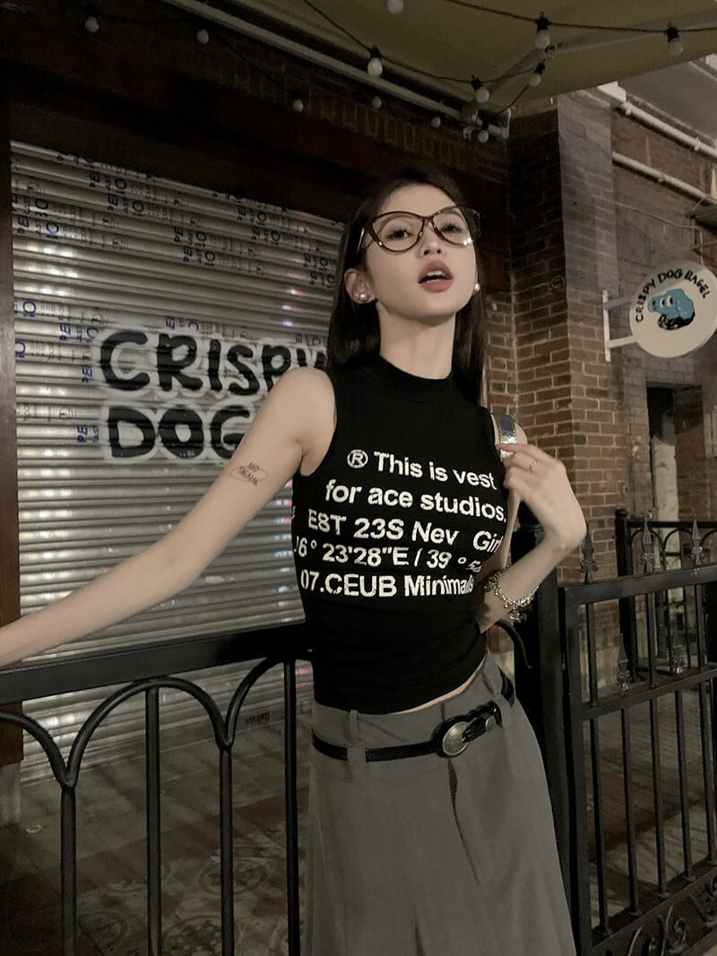 黒のノースリーブ Tシャツ女性の夏 2023 新しいアメリカの純粋な欲望の小さなスリムスリムベストトップ ブラック サマー 夏物 ピュア 8571638911260794