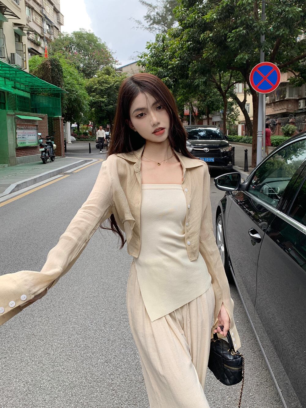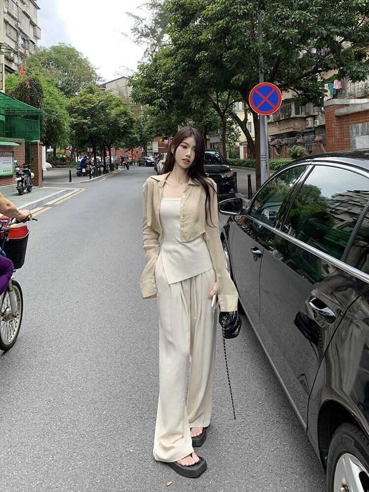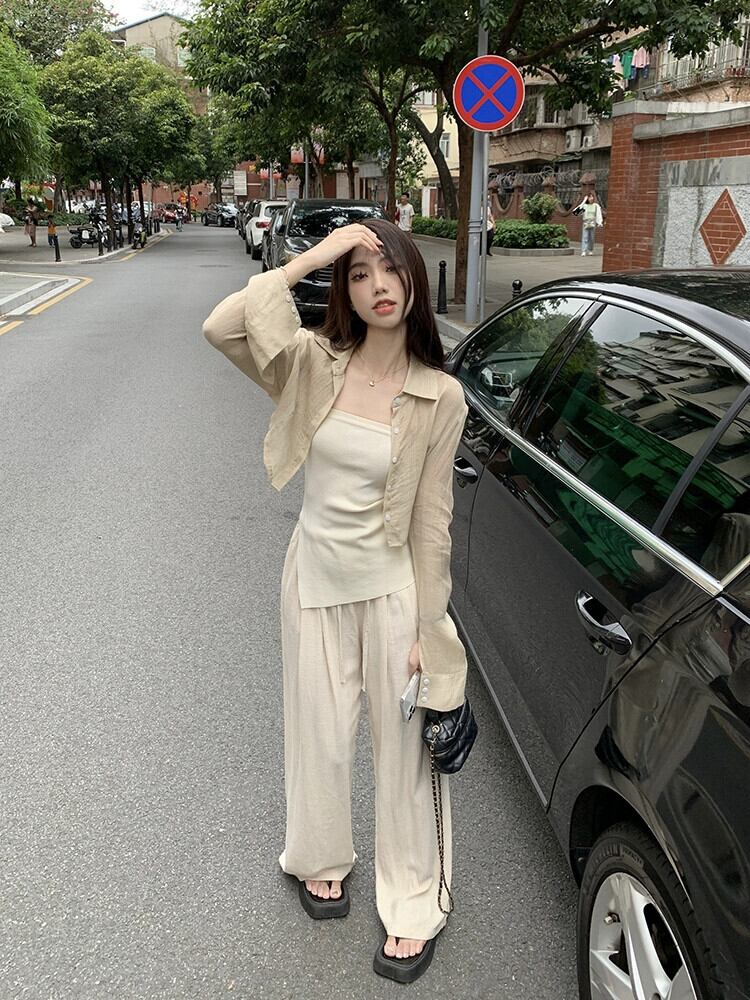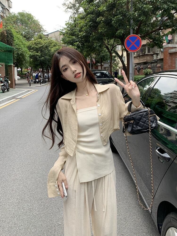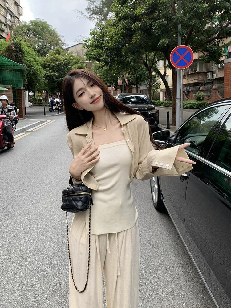 日焼け止めショートシャツジャケット女性デザインセンスニッチシャツ2023春新しい気質シックな長袖トップ ロング スプリング 春物 8571668561014925