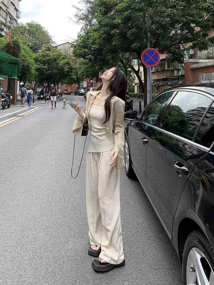 色:カメリアアプリコットシャツ,アプリコットホワイトのチューブトップ,ディアボロパンツ