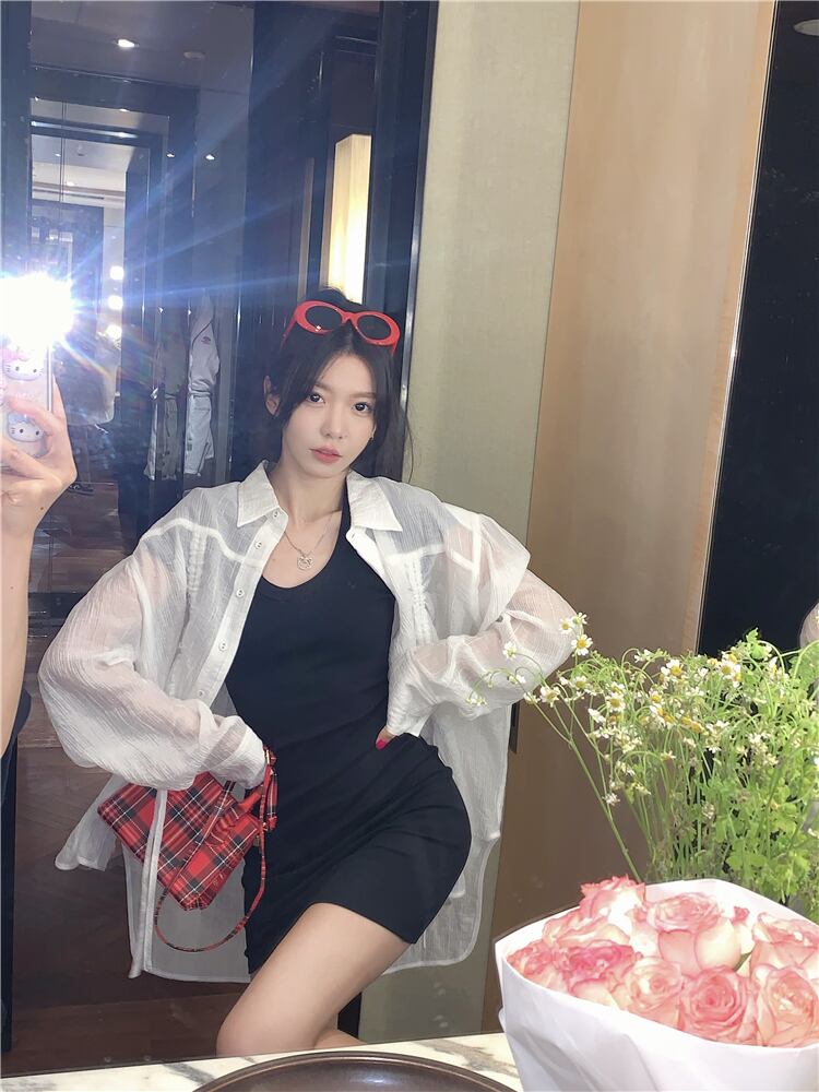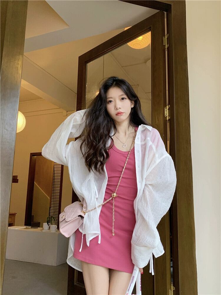 白い日焼け止めカジュアルシャツジャケット女性の2023年夏新しいデザインセンスニッチルーズ気質長袖トップ ロング ホワイト サマー 夏物 8571699189975605
