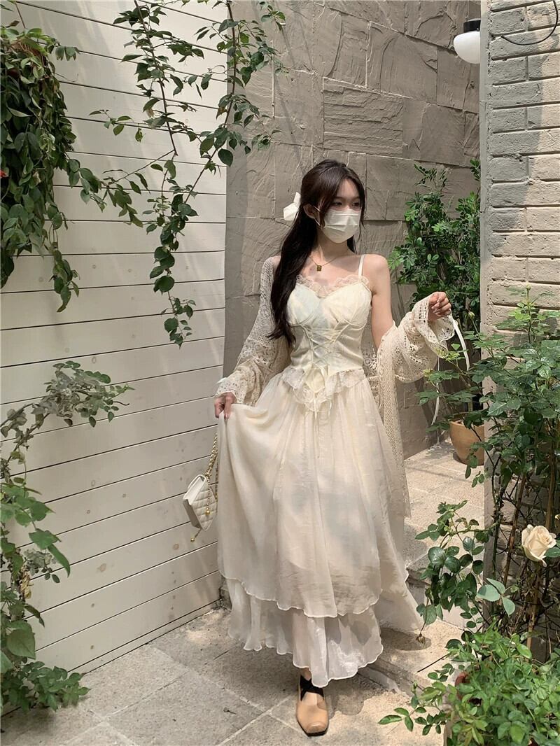 アプリコットレースキャミソール レディース アウター 春インナー フレンチシックで美しいデザインセンスのニッチショートトップス スプリング 春物 8571653861592875