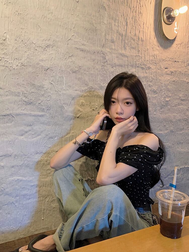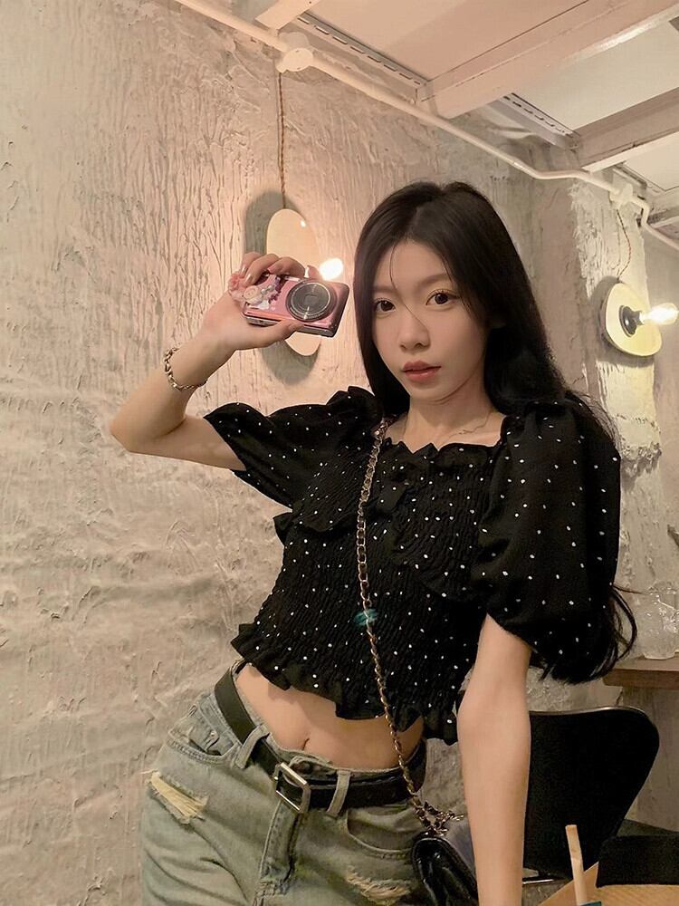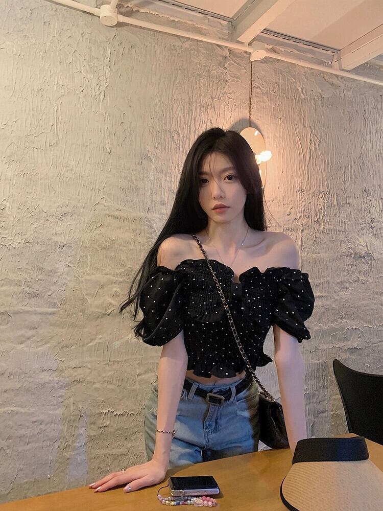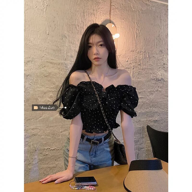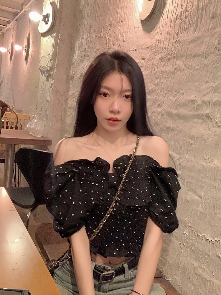 ワンショルダーショートトップレディース夏デザインセンスニッチ純粋な欲望シックなリボン半袖水玉模様シャツ サマー 夏物 ピュア 857165506481988