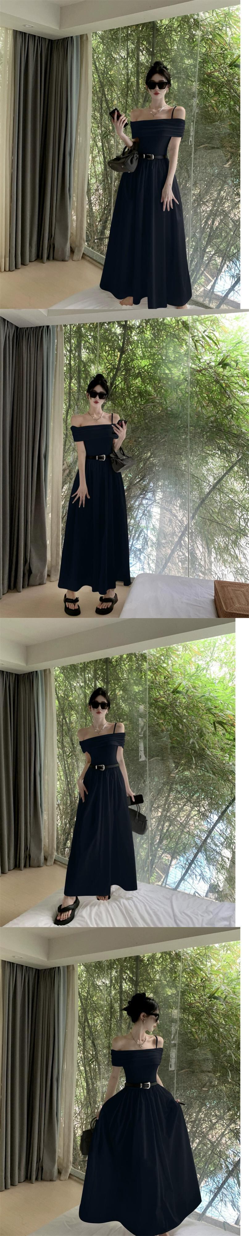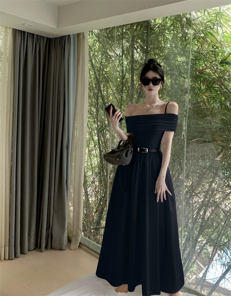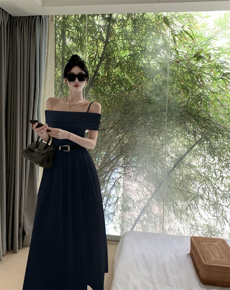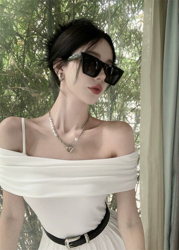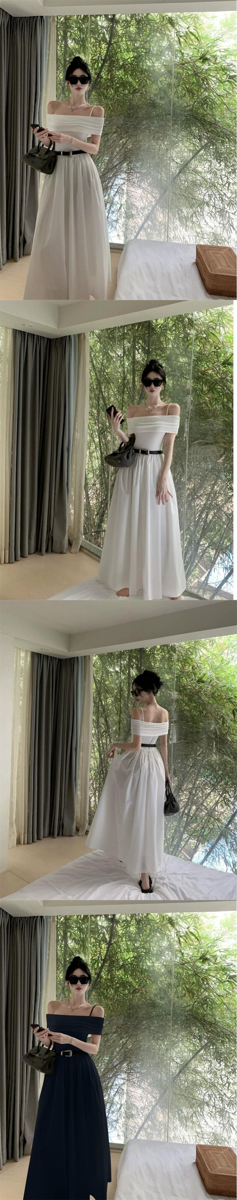 白いワンショルダードレスの女性の2023年夏新しいデザインセンスニッチ気質ハイエンドウエストロングスカート ホワイト サマー 夏物 8571628007166453