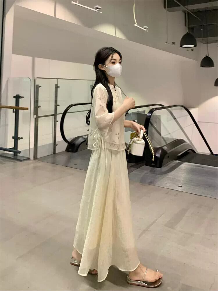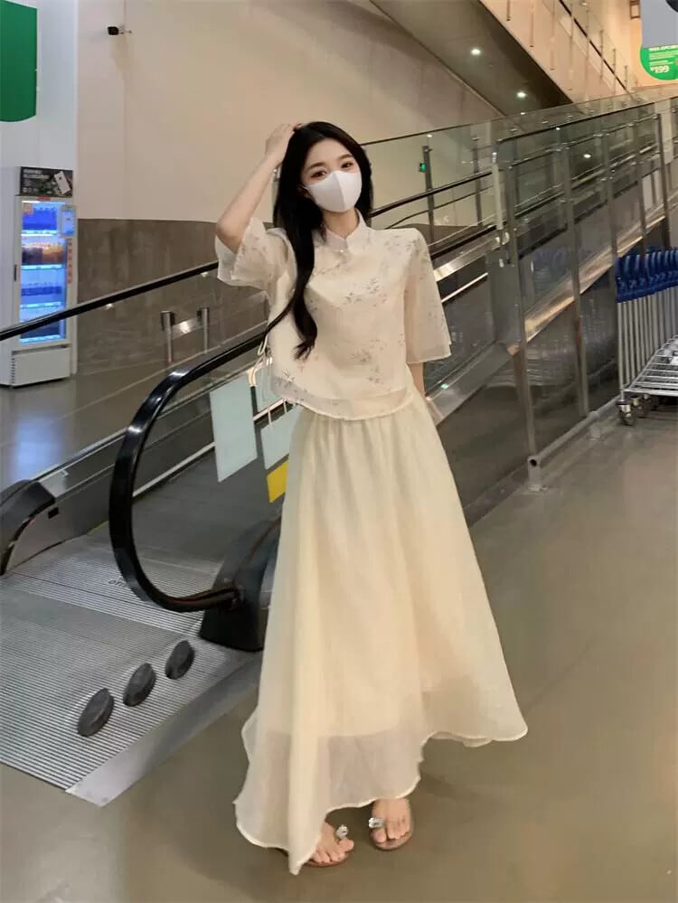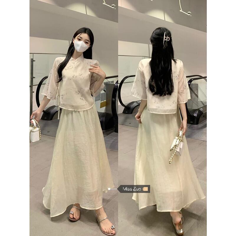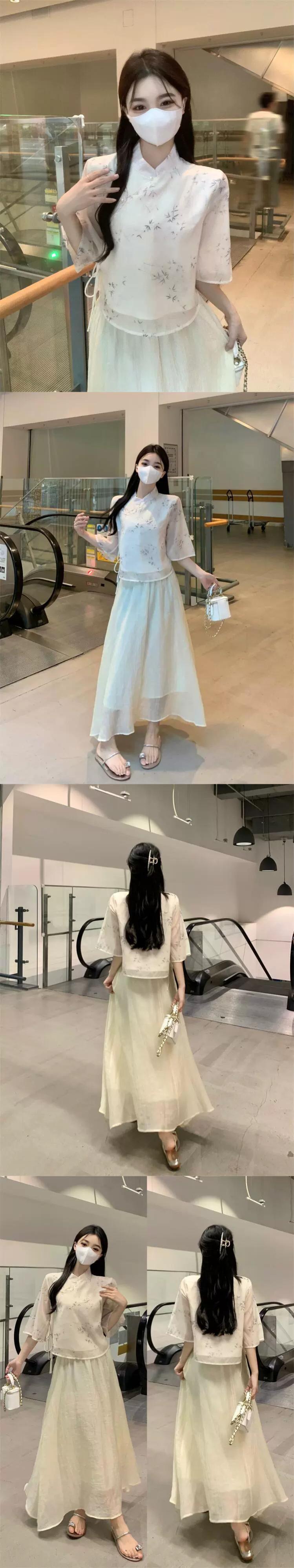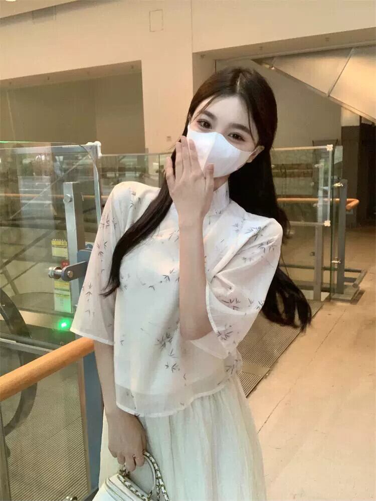 改良されたチャイナ ドレス ショート トップ女性の夏の新しい中国風禅国民風穏やかな気質のハイエンド半袖シャツ サマー 夏物 857167331941764