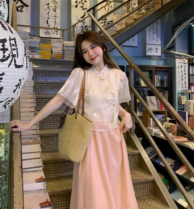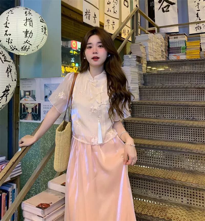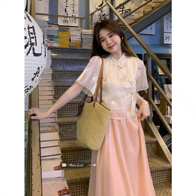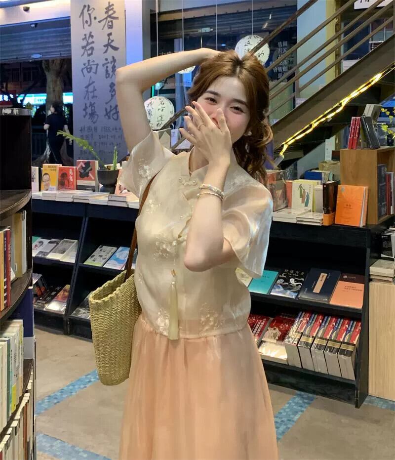 美しい新しい中国風のバックルトップ女性のデザインセンスニッチ2023夏新しい小さい短い半袖シャツ ショート サマー 夏物 8571689078620903