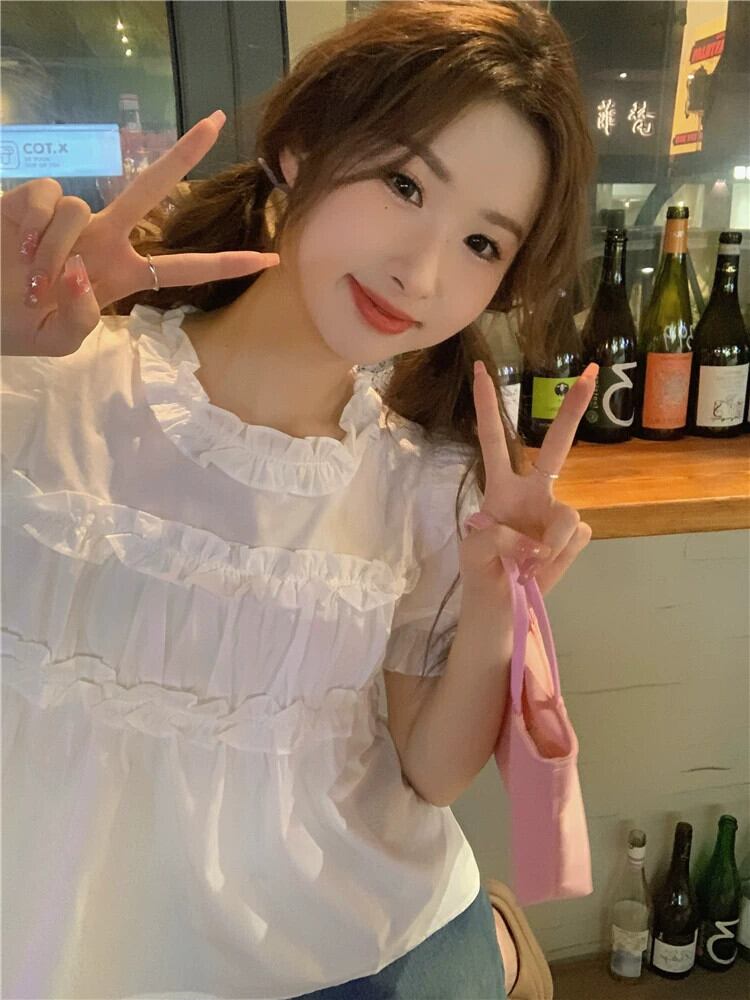 ドールシャツカバーベリートップスレディース夏デザインセンスニッチ甘い小さな白い半袖シャツ ホワイト 大人ガーリー スウィート キュート カジュアル サマー 夏物 8571672787599173