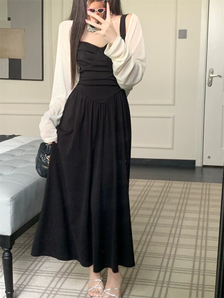 スリングドレスの女性の夏の 2023 新しいフレンチヘップバーンスタイルリトルブラックドレス気質ハイエンドスリムロングスカート サマー 夏物 8571661321652813