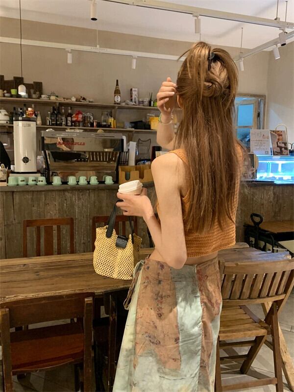 ミルクティーカラーノースリーブベスト女性のアウターウェア 2023 夏の新しいネットレッドスタイルのインナーウェアショートトップス サマー 夏物 8571658866769002