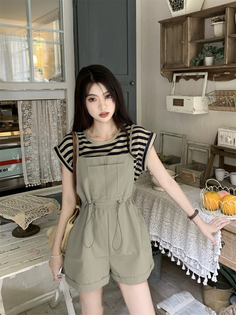 オーバーオール ショートパンツ レディース ルーズ ストレート ワイドレッグ パンツ 2023 夏の新しいスタイルのハイウエスト パンツ カジュアル オールマッチ ハイウェスト サマー 夏物 ショーツ ブルマー 8571645191209884