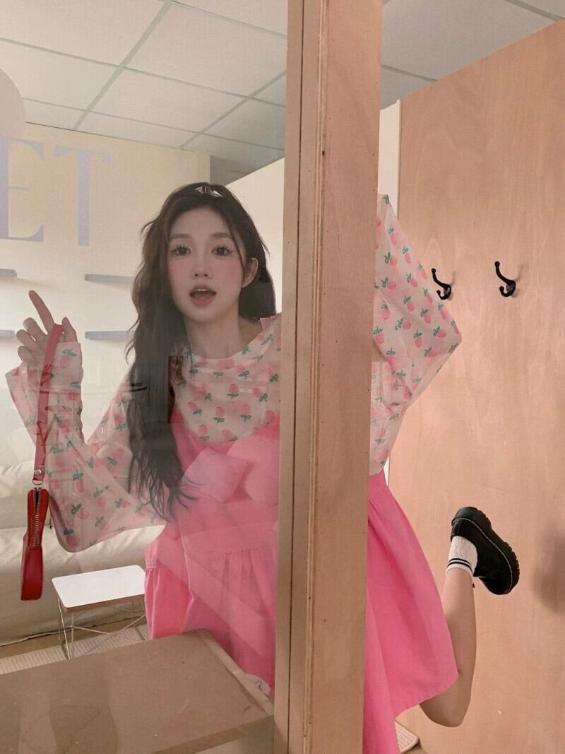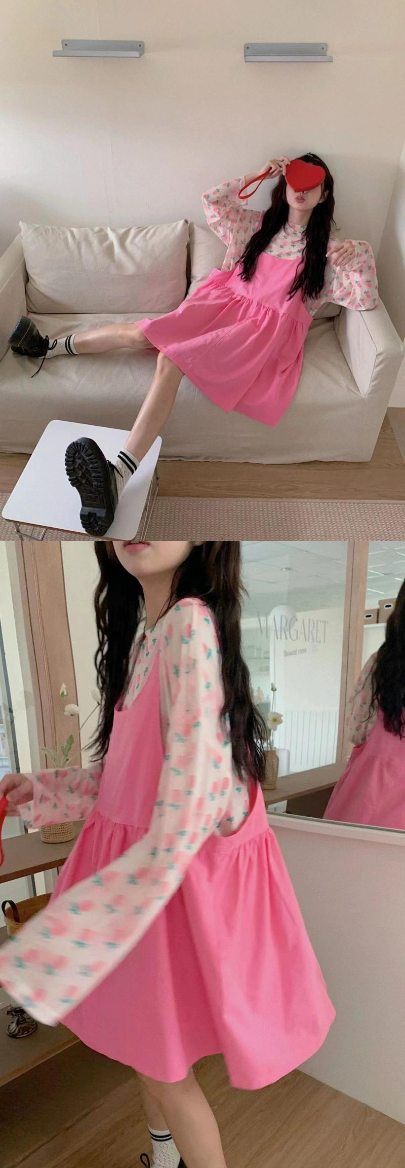 キャンディーカラーのサスペンダードレス婦人服小男夏2023新スタイルカバーベリールーズショートスカート年齢削減 レッド サマー 夏物 8571639900474090