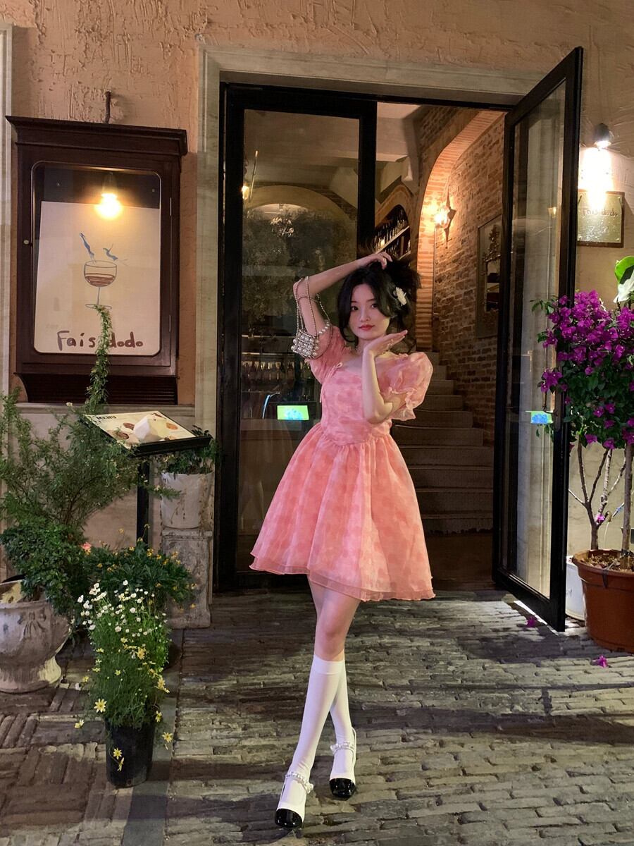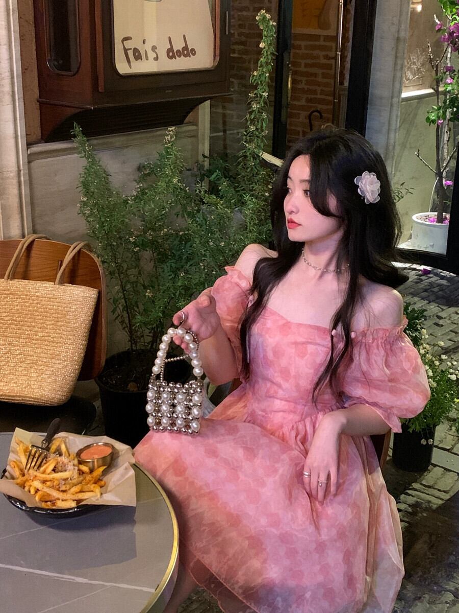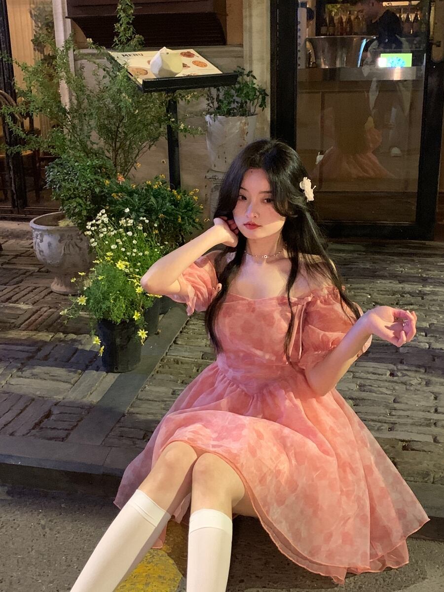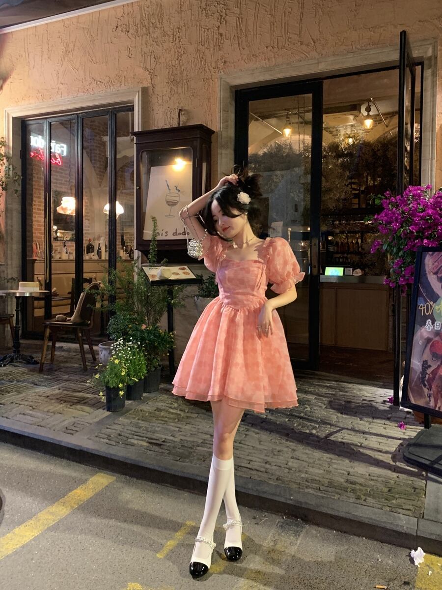 パフスリーブ花柄ドレス女性小さなプリンセスドレス夏 2023 新しいフレンチスイートふわふわショートスカート 大人ガーリー スウィート キュート カジュアル ふわふわ サマー 夏物 857163670037065