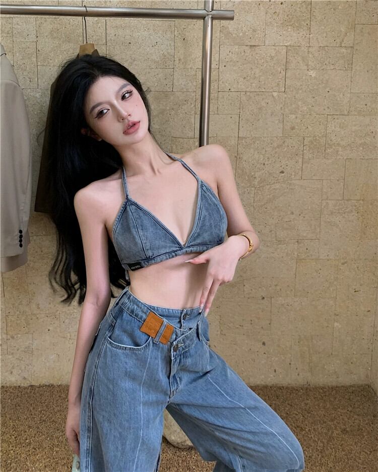デニムキャミソールレディースアウター夏デザインセンスニッチ純粋な欲望の女の子セクシーな香港スタイル美しいバックストラップトップ サマー 夏物 ピュア 8571611956986151