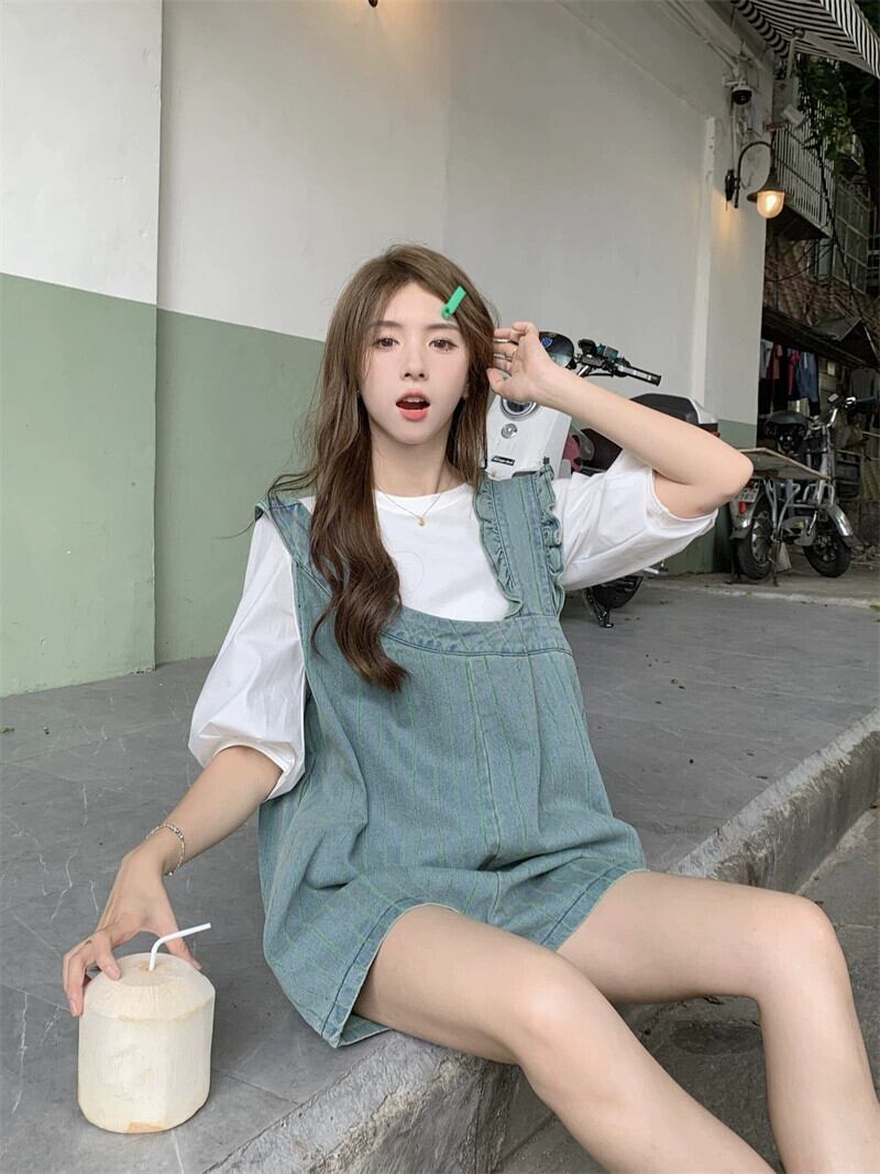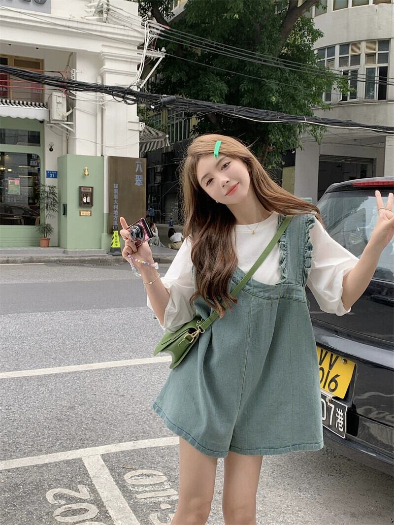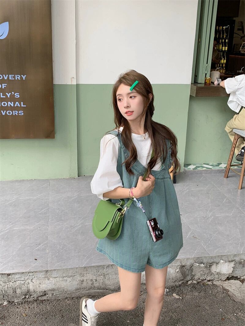 デニムオーバーオールショートパンツレディースルーズストレートワイドレッグパンツ2023夏新デザインセンスニッチスリムパンツ サマー 夏物 ショーツ ブルマー 8571611158577928