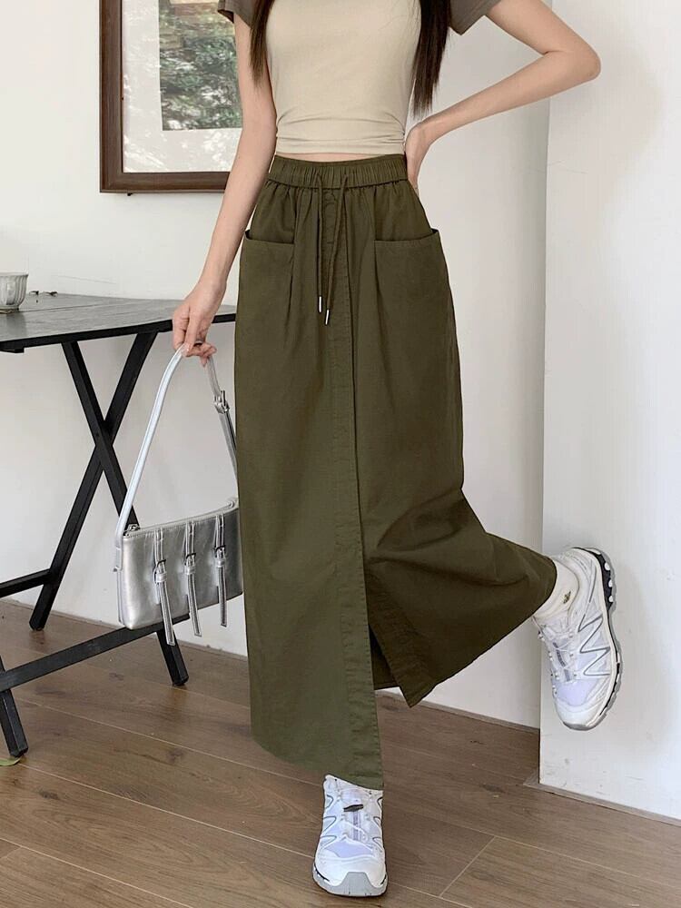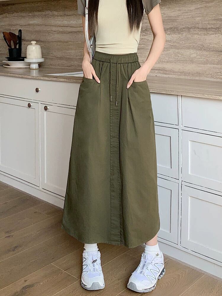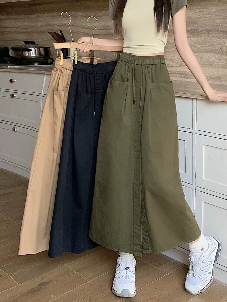 カードカラースカート レディース ハイウエスト 薄手 Aラインスカート 2023年夏新作 梨型ボディ ミドル丈スカート ヒップ付き ハイウェスト サマー 夏物 8571623971373164